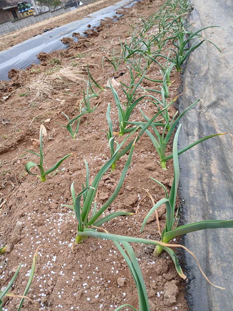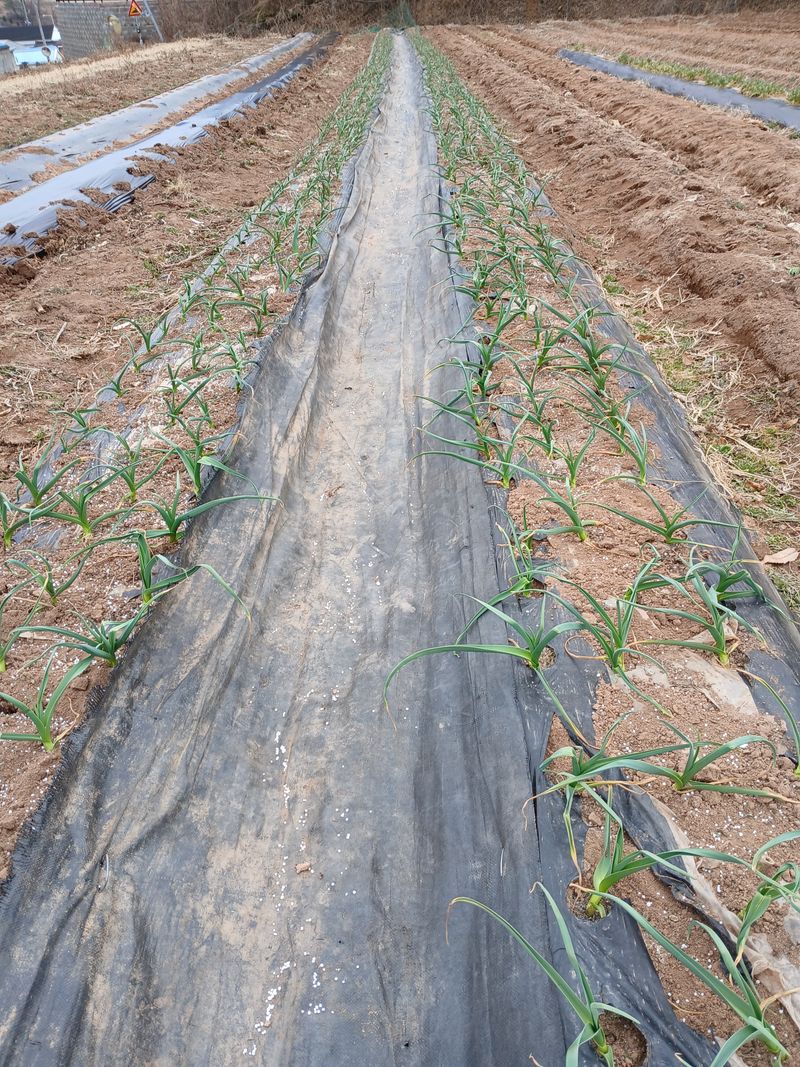 마늘밭 부직포 걷어내고 잡초 제거하고 난뒤 비료 요소를 뿌렸습니다.