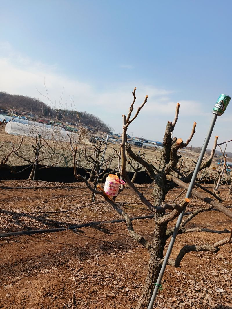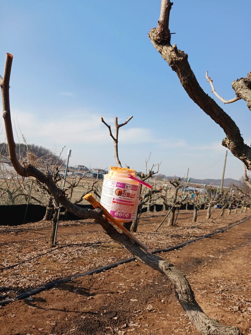 대추나무 가지치기한후 상처에 살균제 톱신 바르는작업 마쳤슴니다