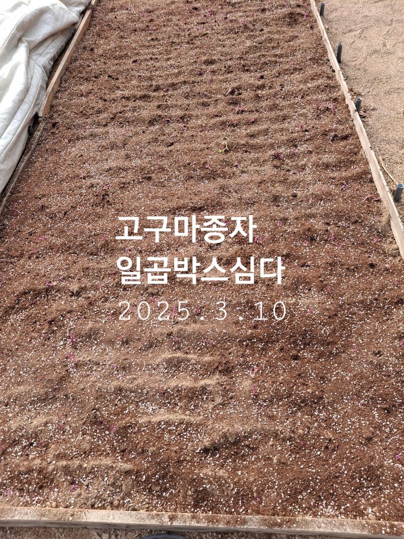 3월10일 고구마도 싹을 내기위해 방 안에 저장했던 종자를 심고(7박스) 물 주고 밤에는 따스하게 보온을 해줍니다