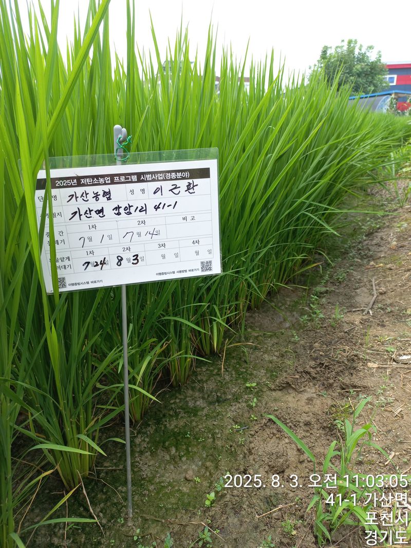저탄소 벼농사 일환으로 논물걸러대기 작업을 3회차하고 사진을찍어 주무부서에 전송으로 보냈다.