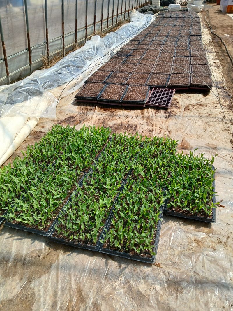 옥수수포트작업 밤기온은 영하이지만 조금일찍 파종했어요 잎이파란옥수수는 4월1일 정식할 오색옥수수입니다 시험재배라서 162구 9판요