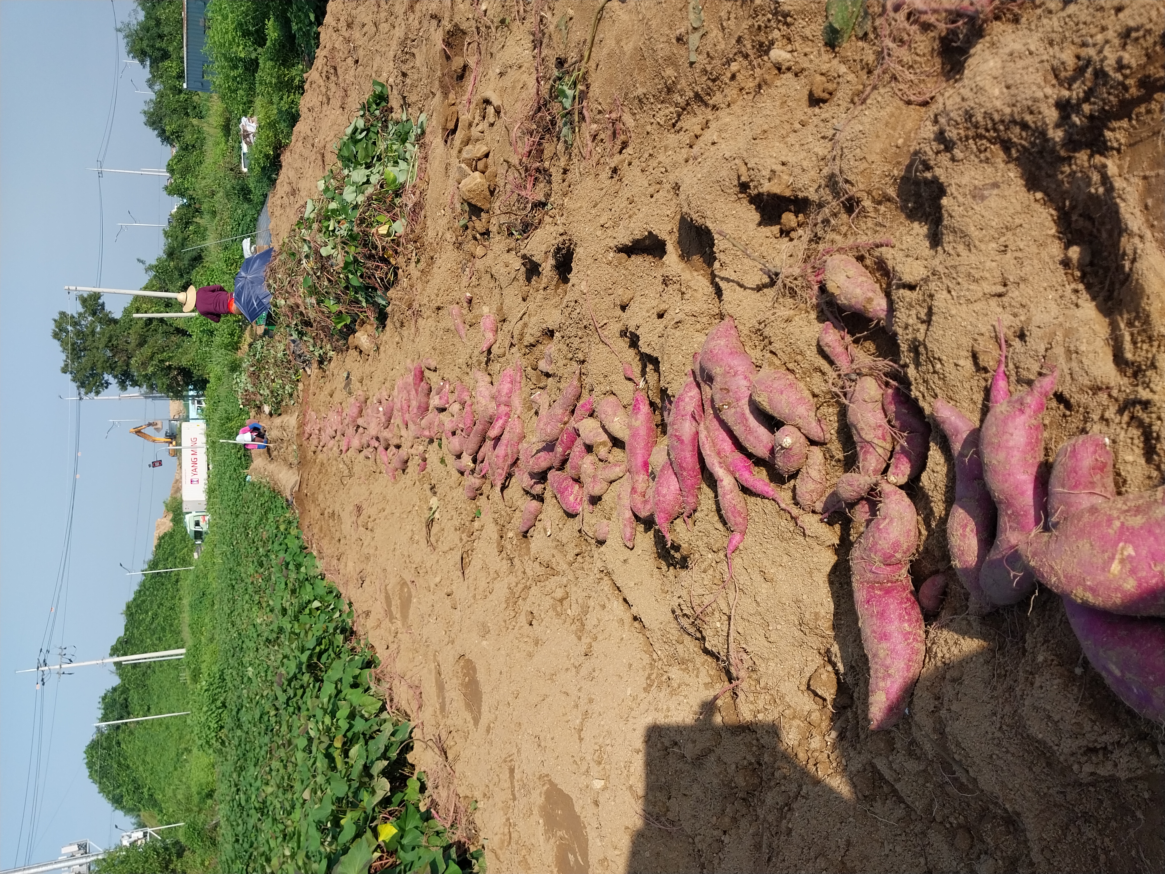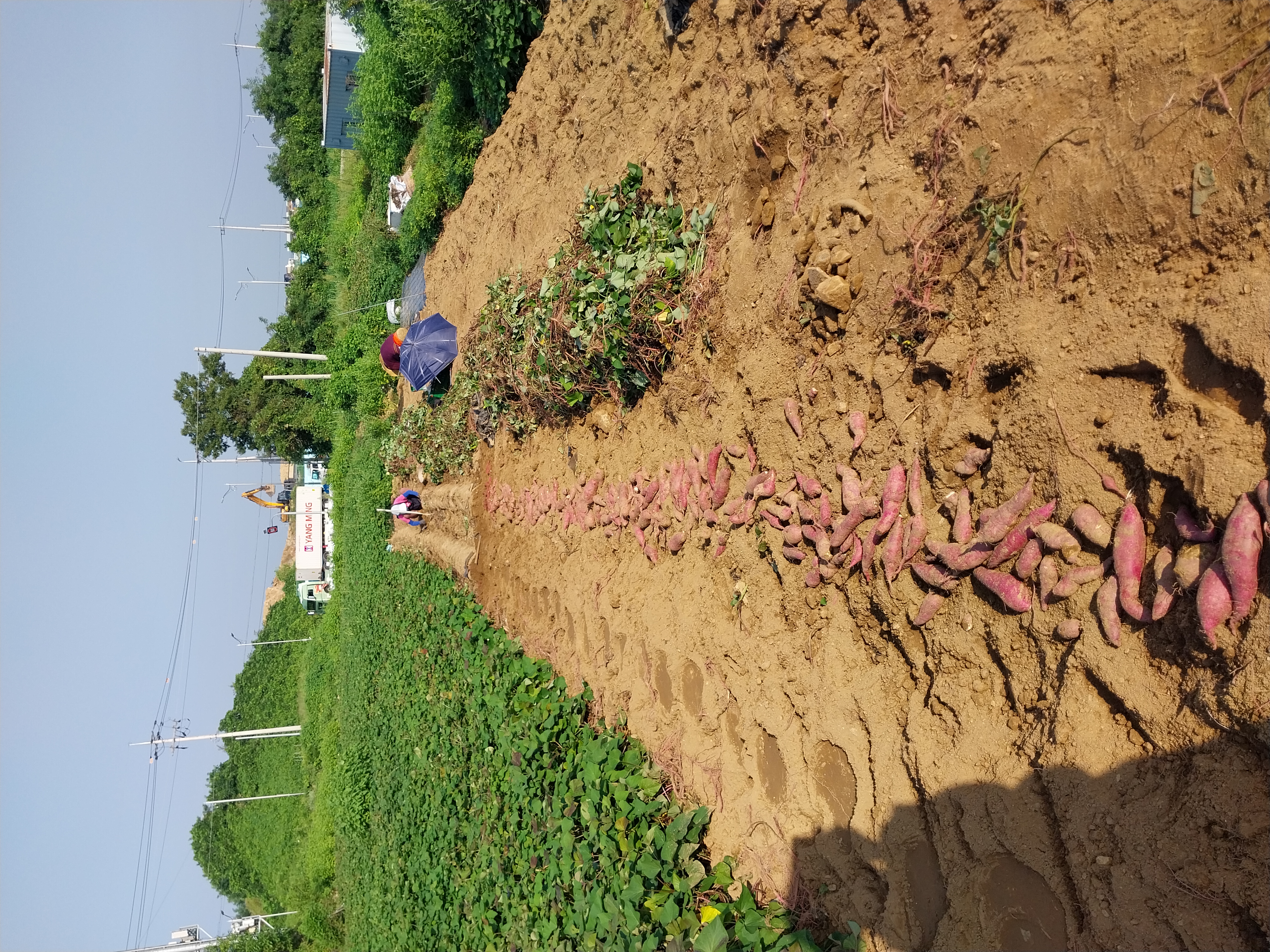 고구마 수확하고 있어요 올해는 장마기간이 길어서인지 수확량이 작년만 못하네요 작년보다 더굵은 편이고 몇개 안달렸네요 수작업을 하다보니 호미에 찍힌게 많이 나오는 편 . 그러나 수확하는 기쁨은 만점!