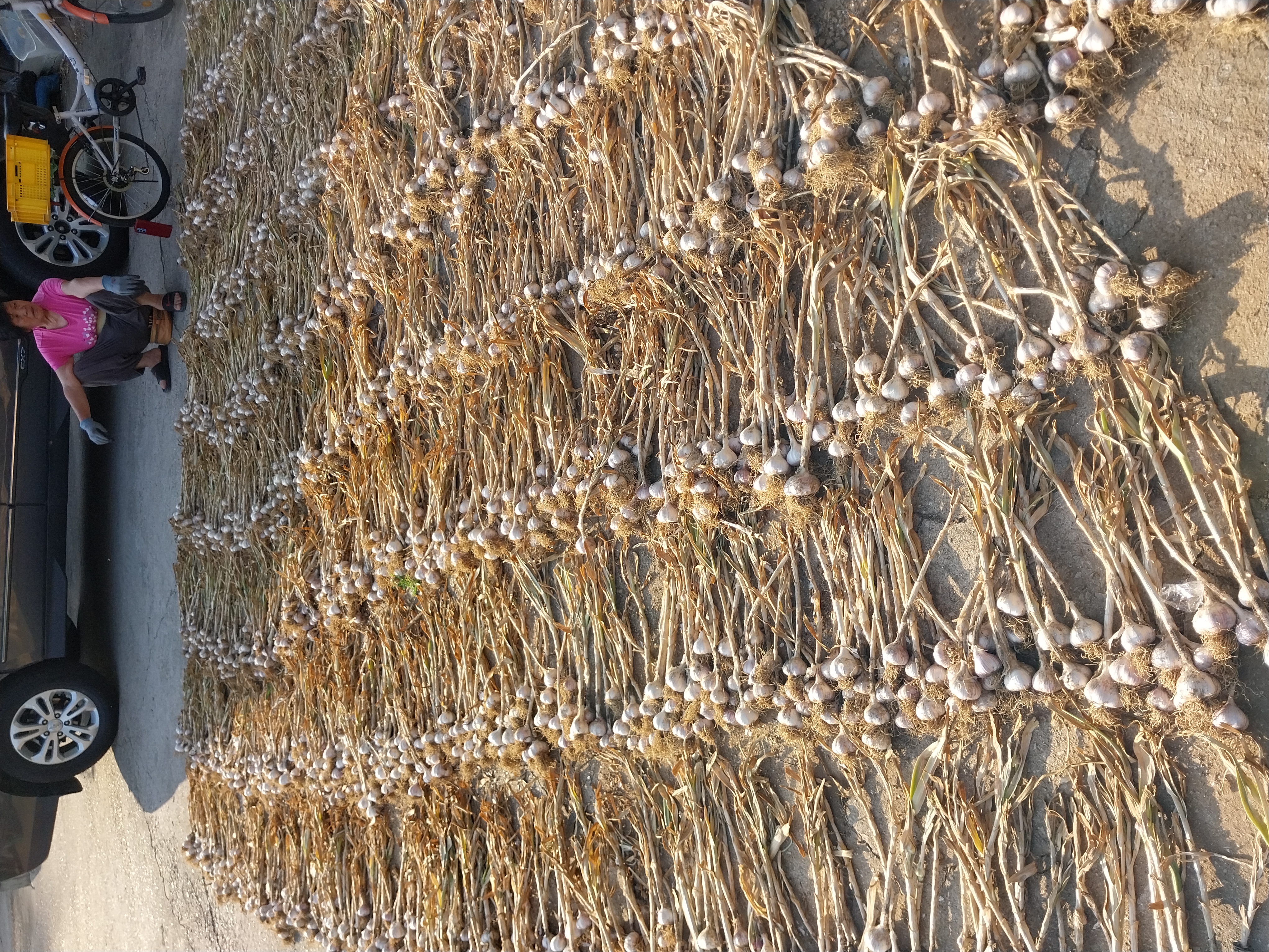 한지형 육쪽마늘 수확함 잎마름병이 있어 방제를 하다가 포기했는데 수확해보니 기대이상으로 마늘이 굵고 단단하네요