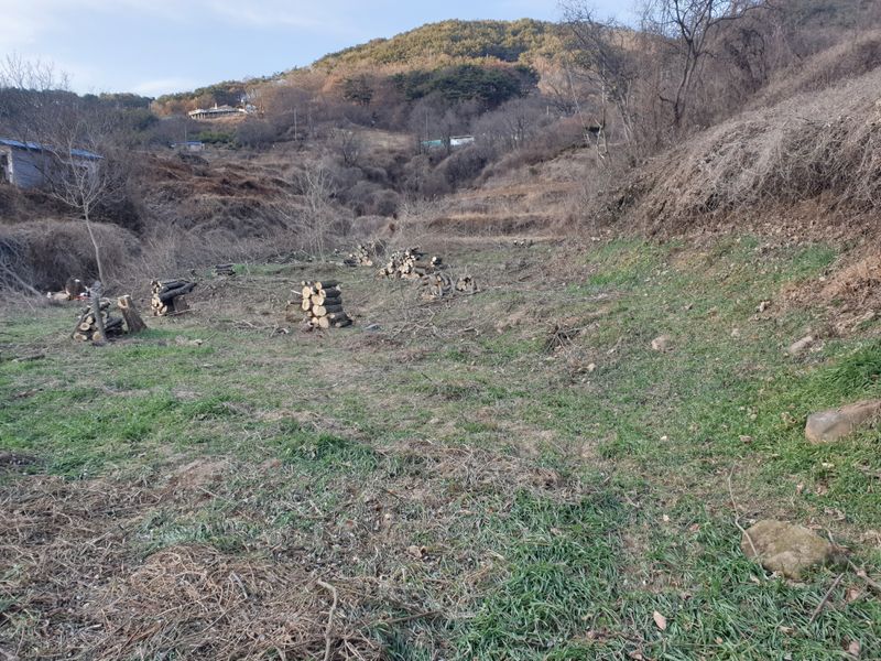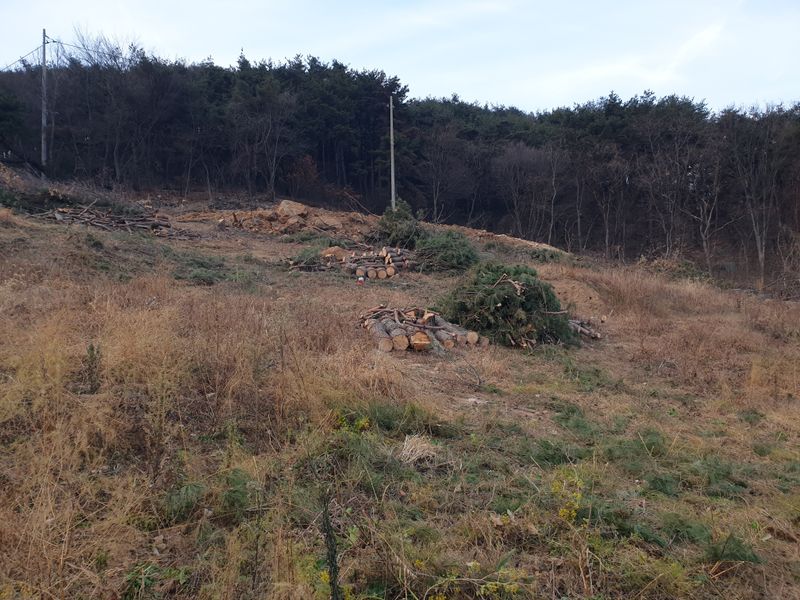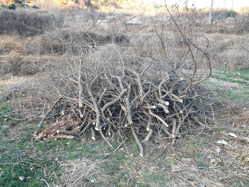 버드나무 자른 토막 호밀 없는 곳에 쌓아둠, 행곡리 164 작업 완료