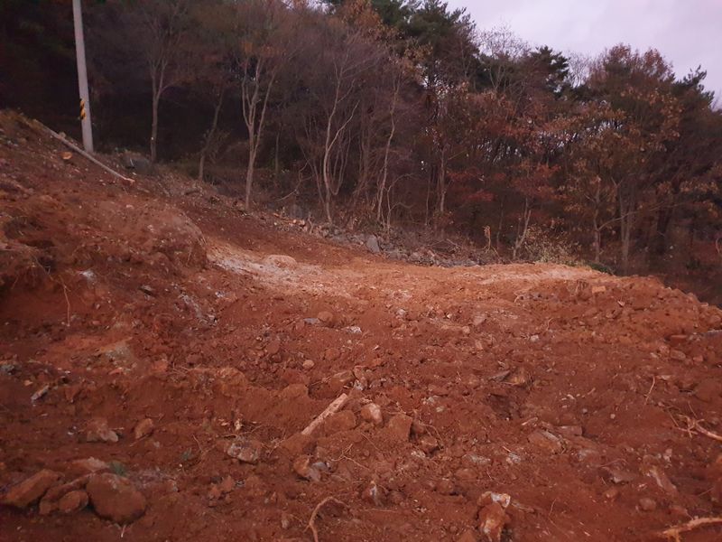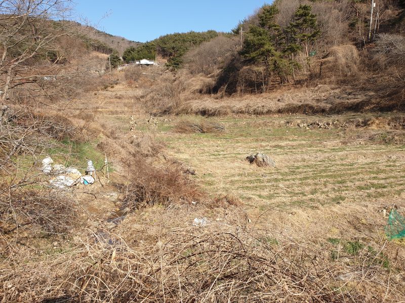 휴경지였던 밭(행곡리248)에 자란 나무들(소나무 제외)을 포크레인 장비 및 기사를 고용 뽑아내어 경지를 정리하여 아스파라거스 및 취나물 등을 심을 수 있는 경지를 확보함