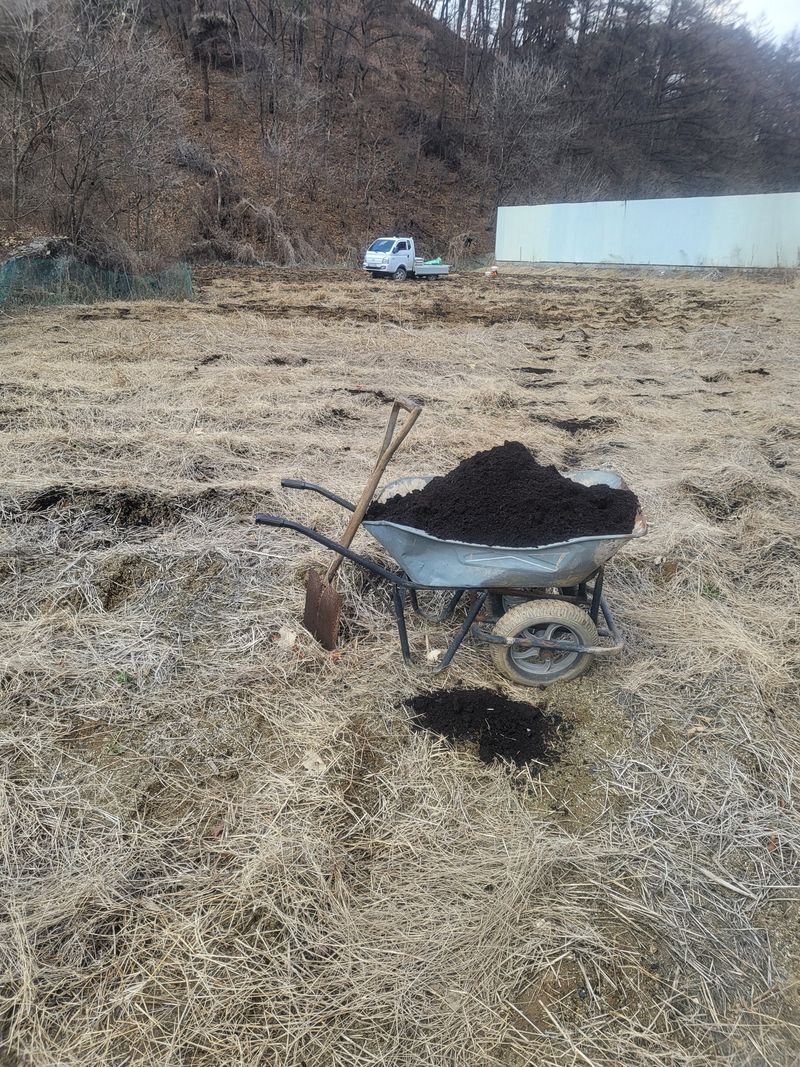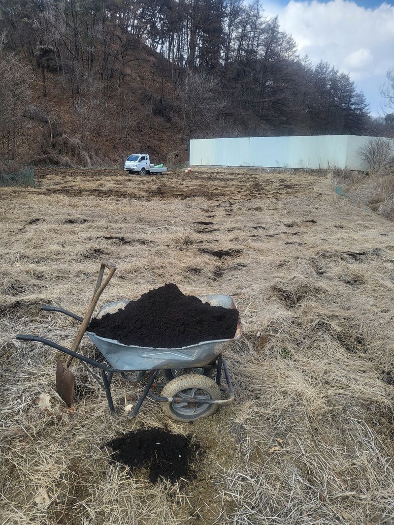 고추밭 만들려고 거름 뿌림600평