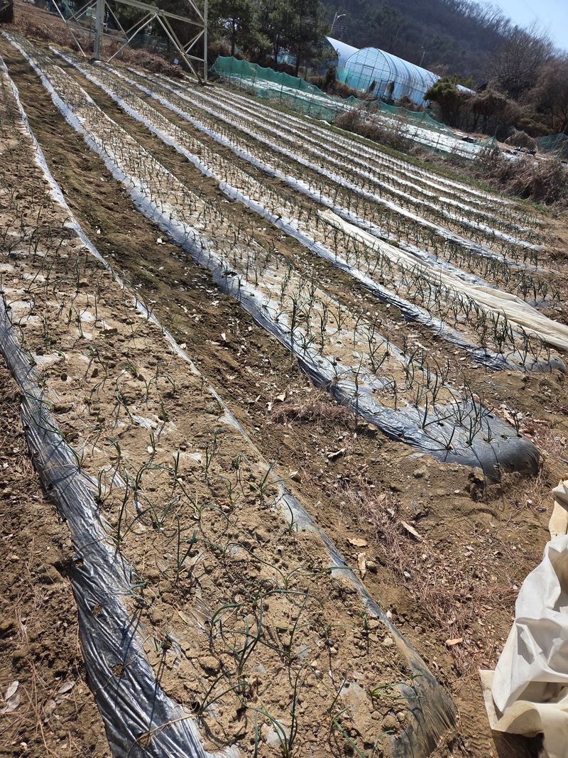 양파 배추모종병추해와 미생물살포함 마늘 양파심는밭 잡풀 제거작업