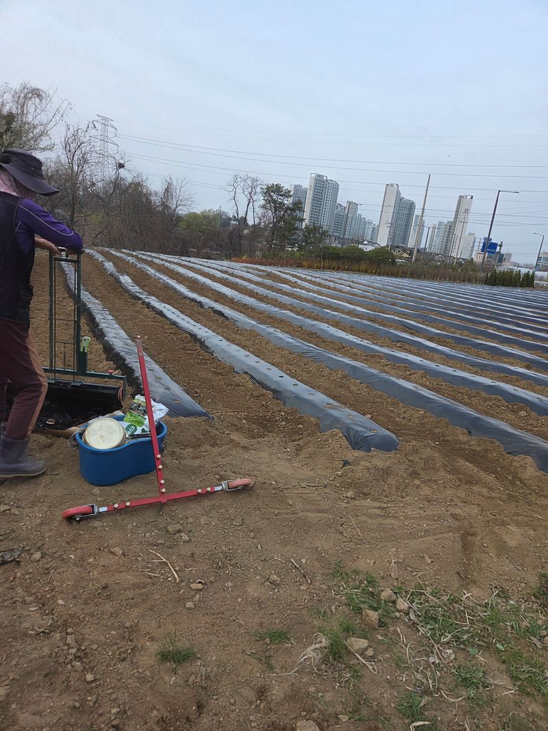 고구마밭 비늴쒸우기 작업 밭고랑 마세트살포 마늘양파밭 제초작업등
