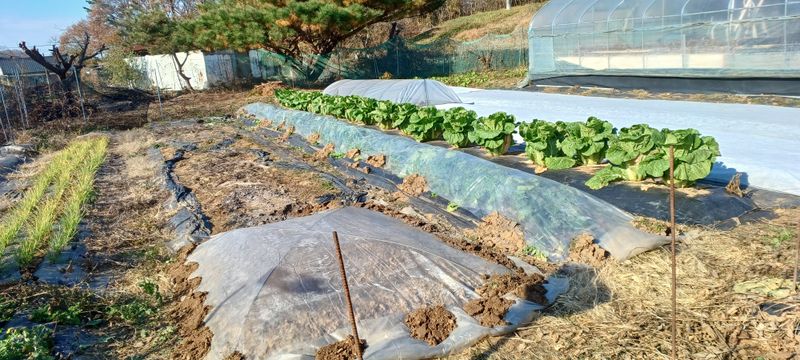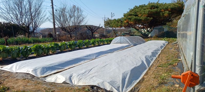 1. 마늘밭 부직포 덮기. 2. 무우 비닐덮기. 3. 하우스 보수. 4. 장미 보온.