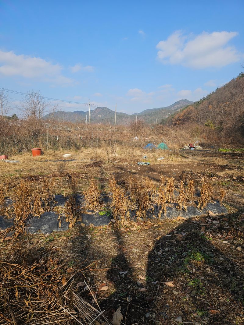 커피가루 뿌리고 , 말뚝이며 그물망등 제거.. 유박 뿌리고 관리기로 갈아 엎다.