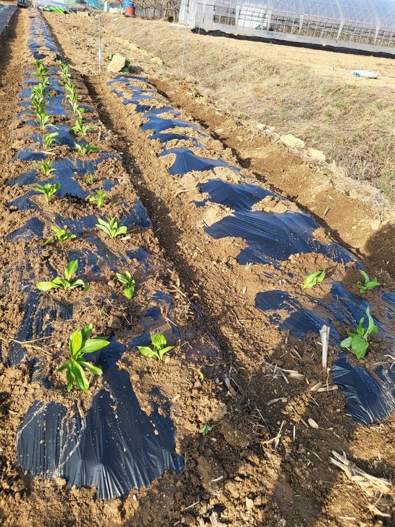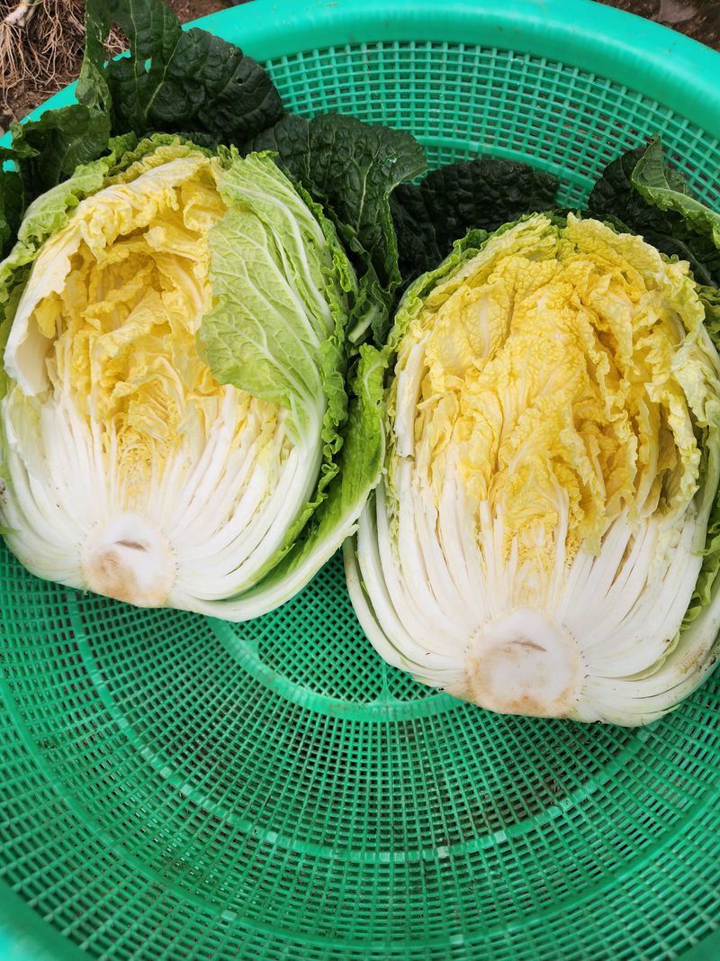 왕겨, 목초액, 한랭사로 키운 봄배추 수확