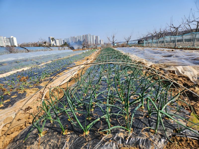 마늘 1,360개 양파 4판 800개 심기 한랭사 씌우고 물 주기