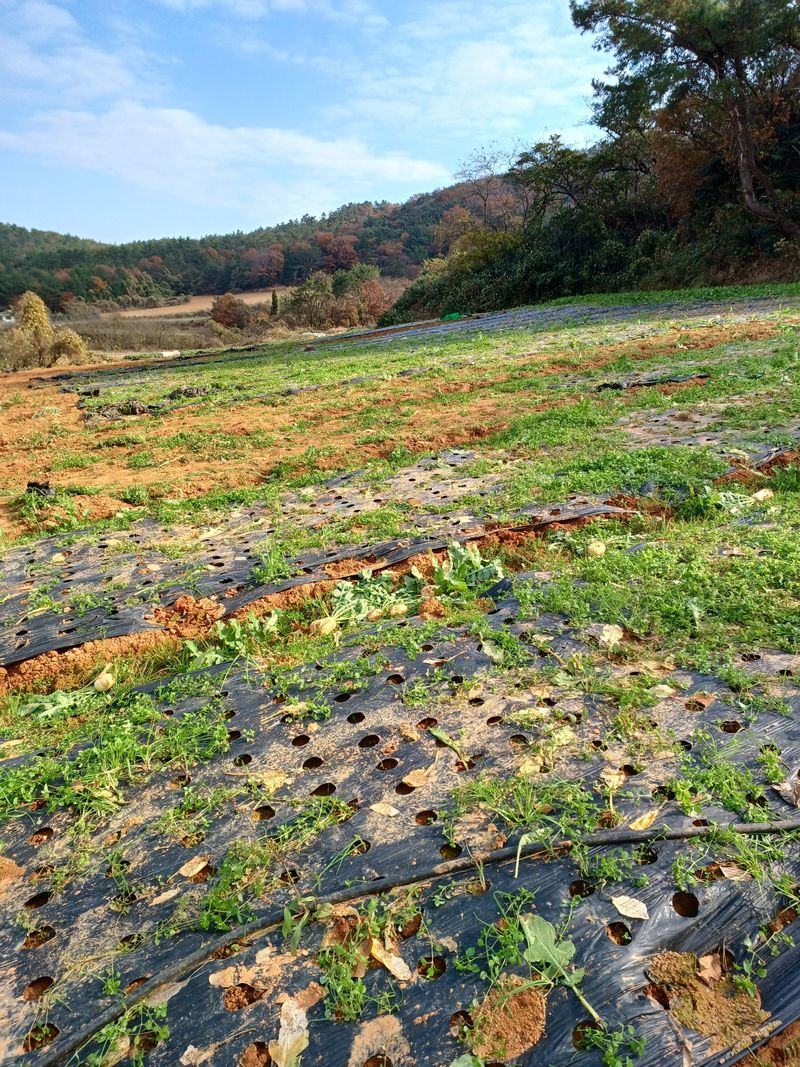풀이너무 많아서 고랑제초제하고 비온다보하니까 비닐 한쪽만 걷고 비오고나면 다시 씌우려고 합니다