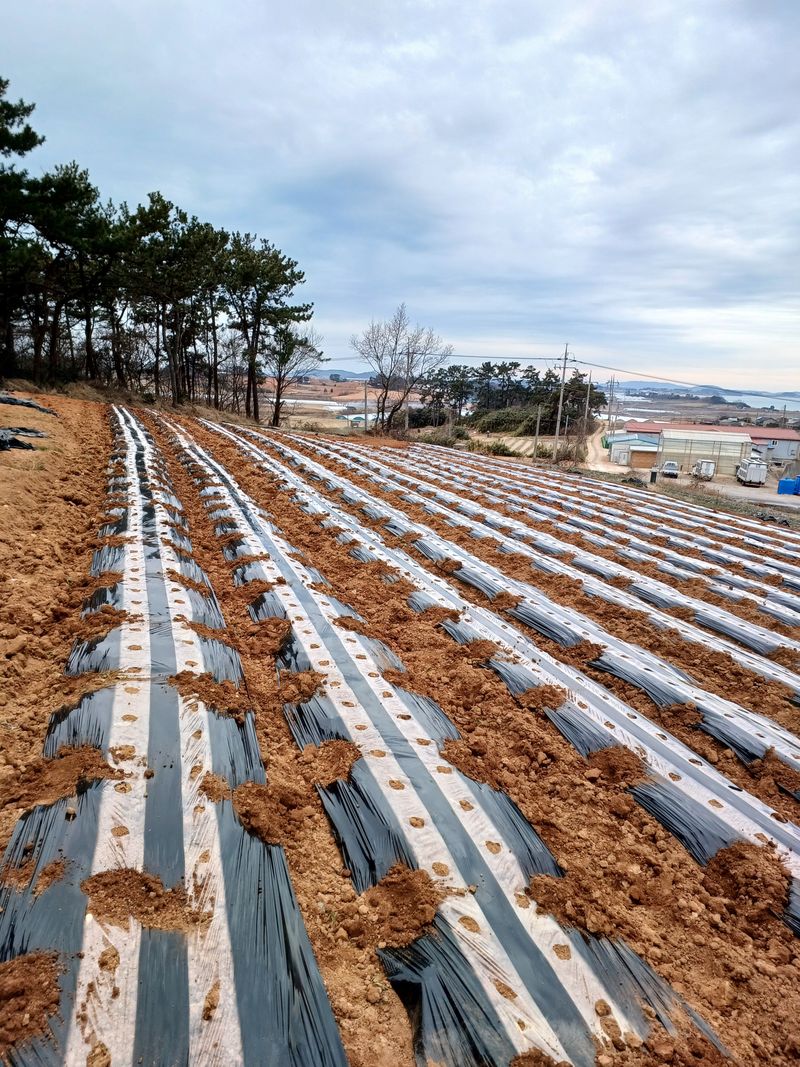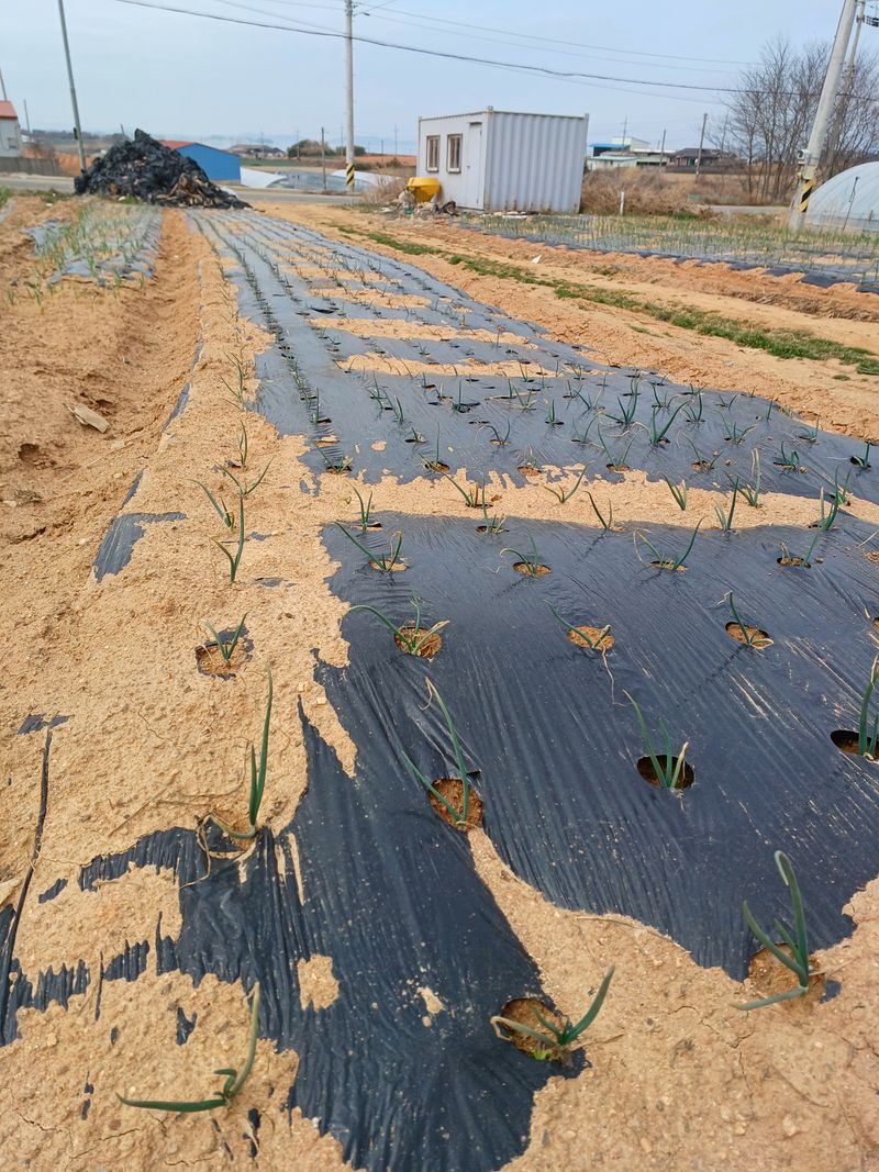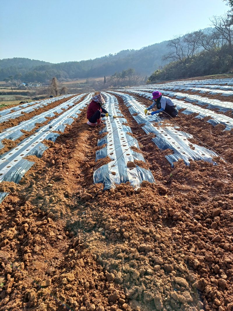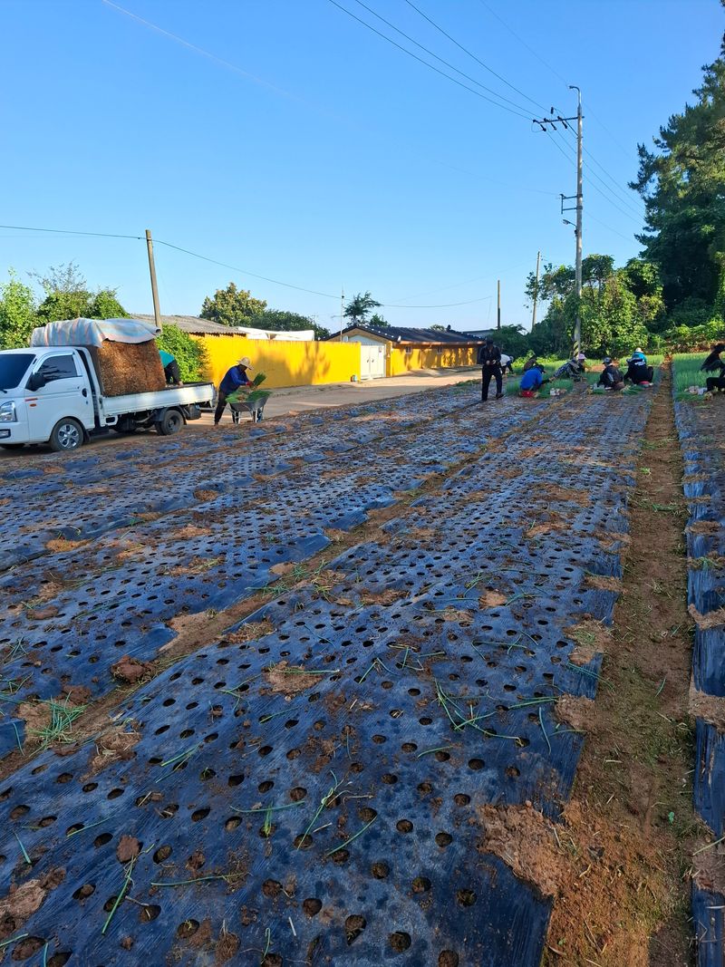 4200평 멀칭하고 쪽파 종구 심기 시작하여 이틀간 36명 한 2300평 심었습니다