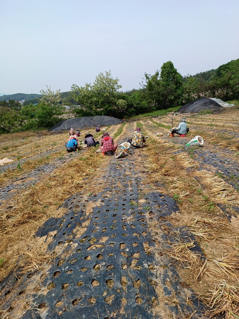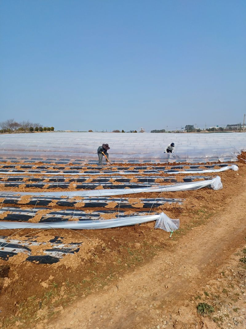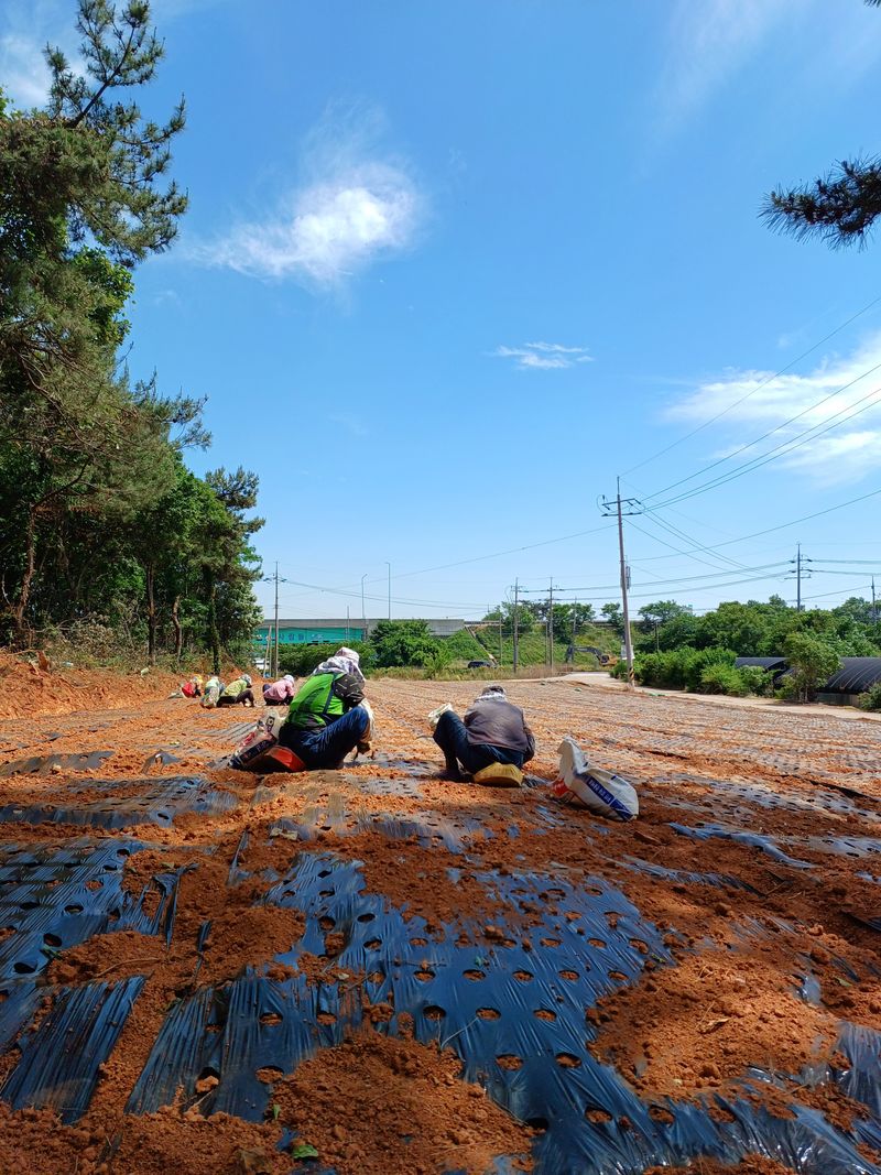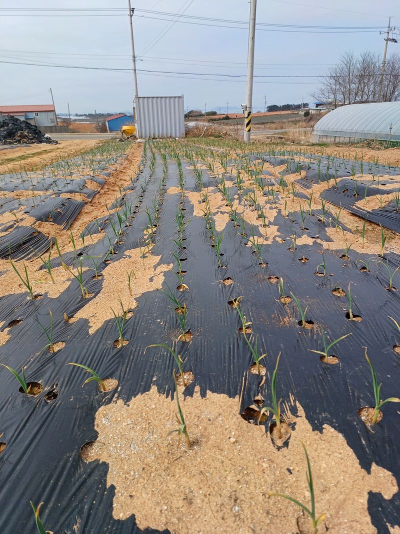 4200평 멀칭하고 쪽파 종구 심기 시작하여 이틀간 36명 한 2300평 심었습니다