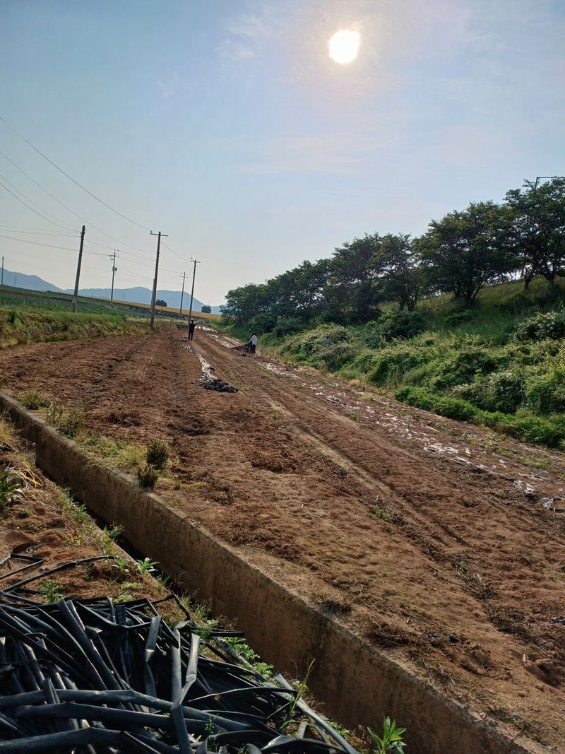 많은 비로인해서 작업 못했어요 비닐걷어내고 로터리 할려고 합니다 속상 하지만 포기 했습니다 종구 심기는 오전에 끝마쳤습니다
