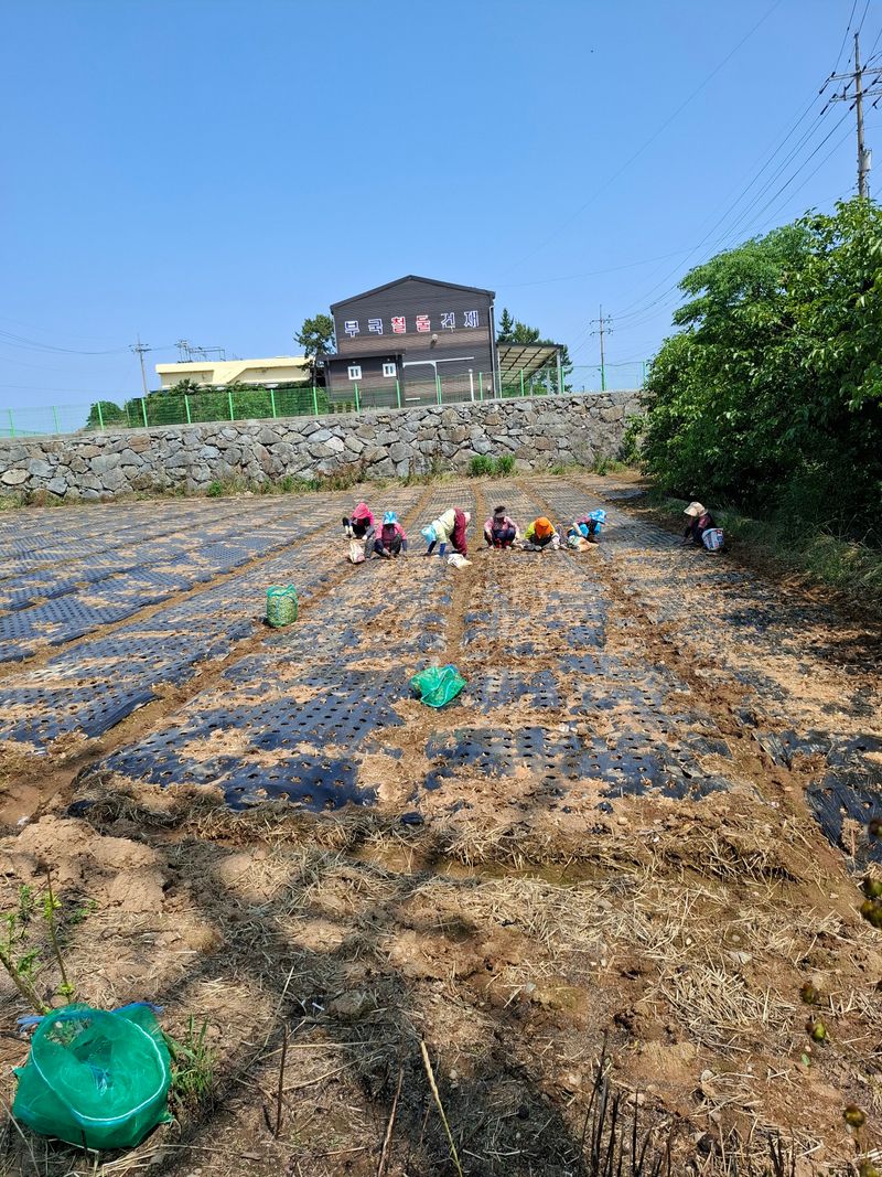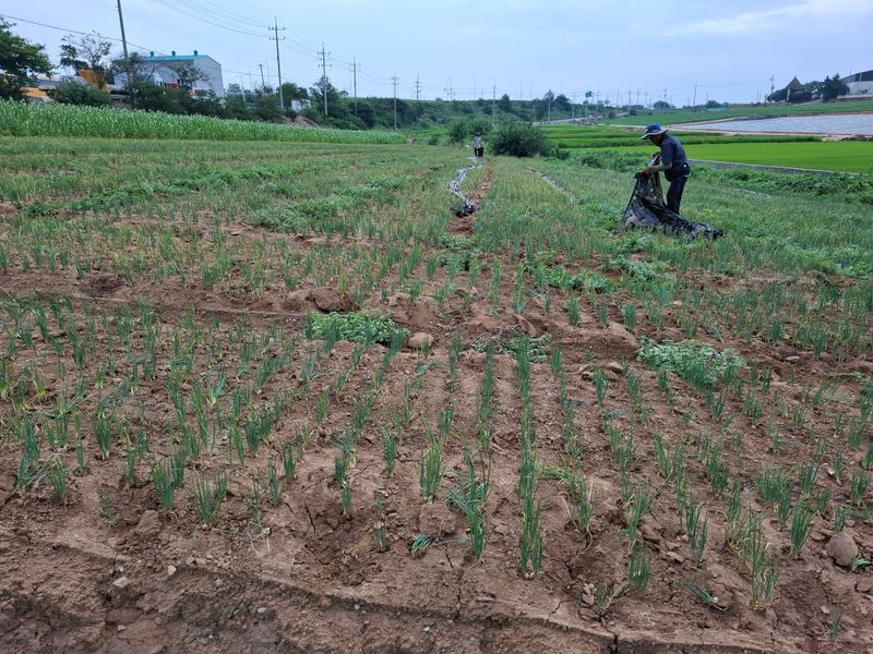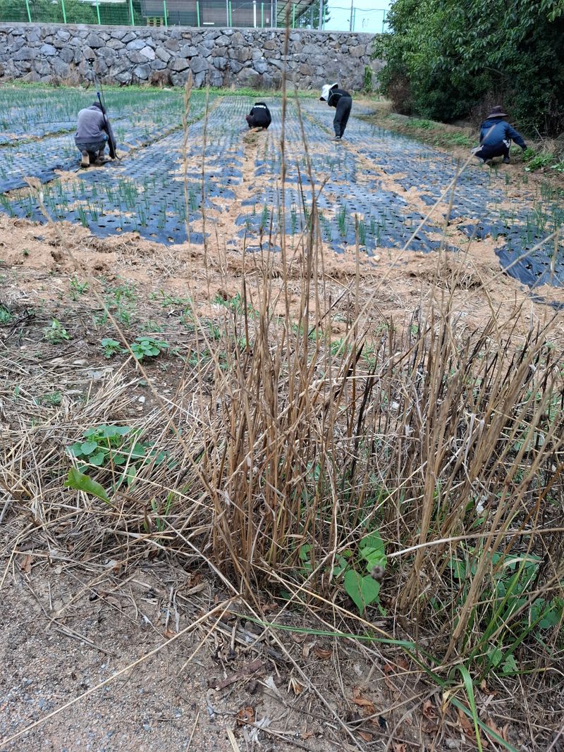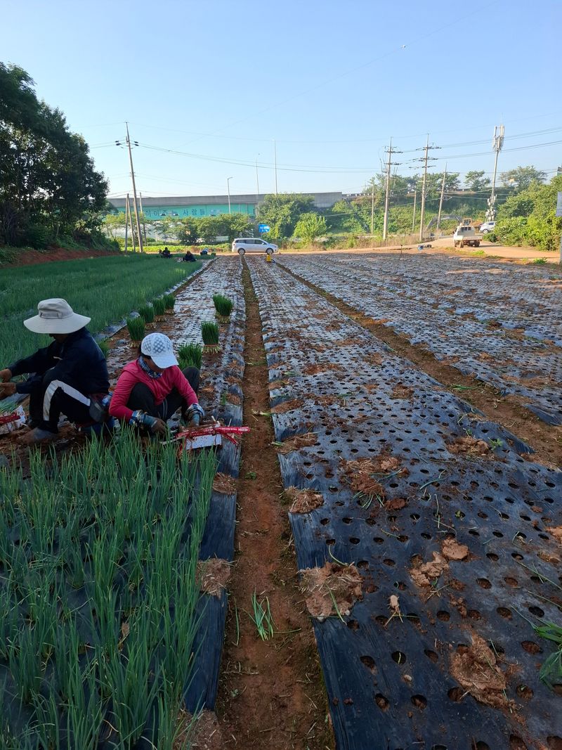 인부 남2명 여 2명 쪽파 밭 풀매기 작업 어제 오후 쪽파걸름 하고나서 소나기 신나게 내려주어 감사합니다