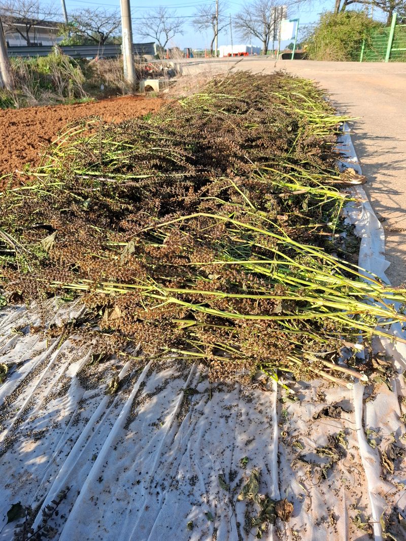 들깨 해내고 마늘 심을려고 두둑 잡고 있어요 둘깨 두가마 털어놨다