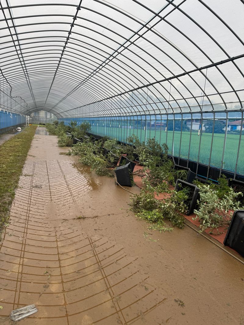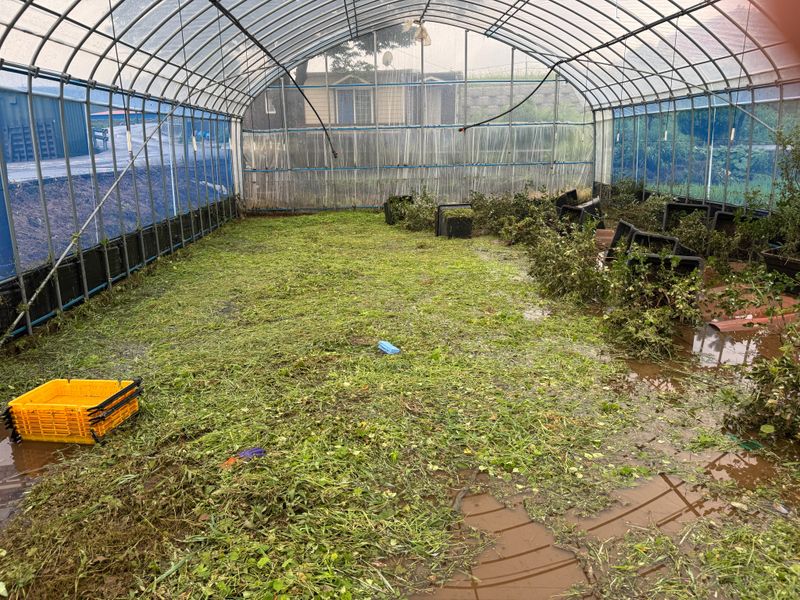 새벽 비로 하우스 내부 70cm 이상 물에 잠기는 침수피해 블루베리 전복 복구 및 하우스 내부 정리