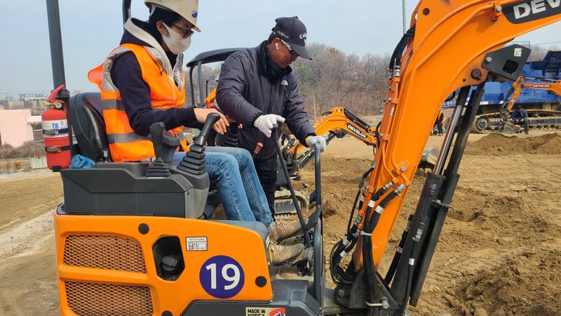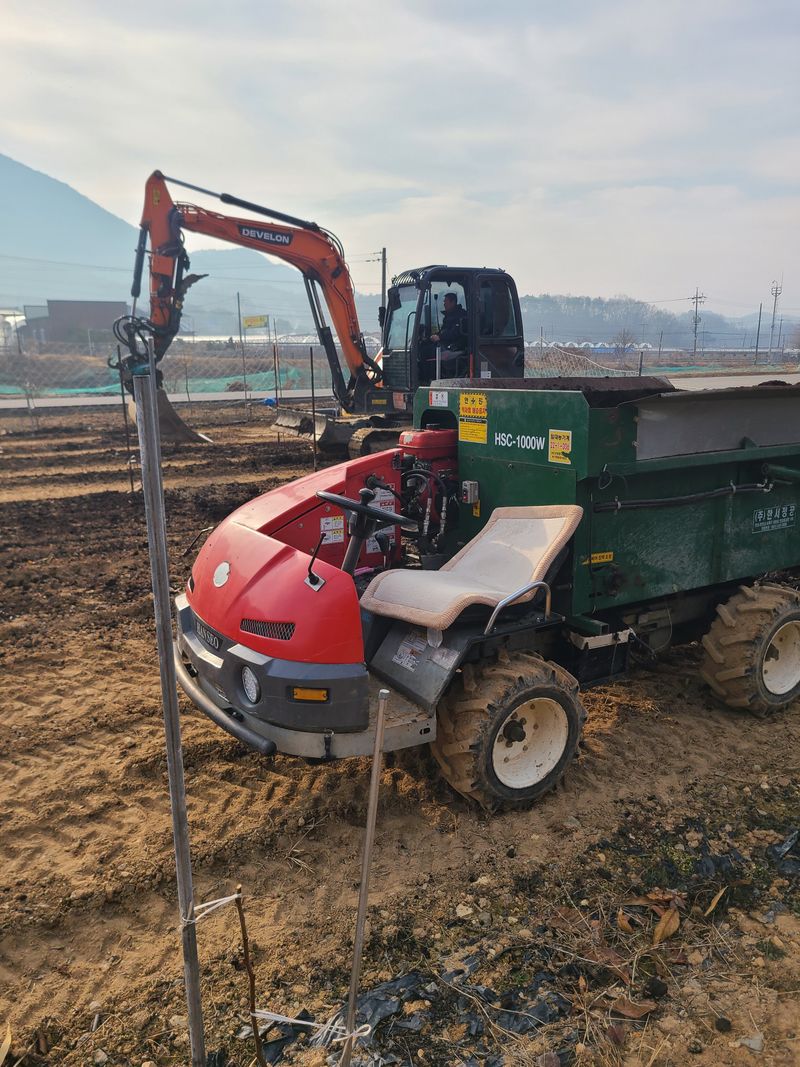 거름작업 ㅡ포크레인, 거름살포기 이용