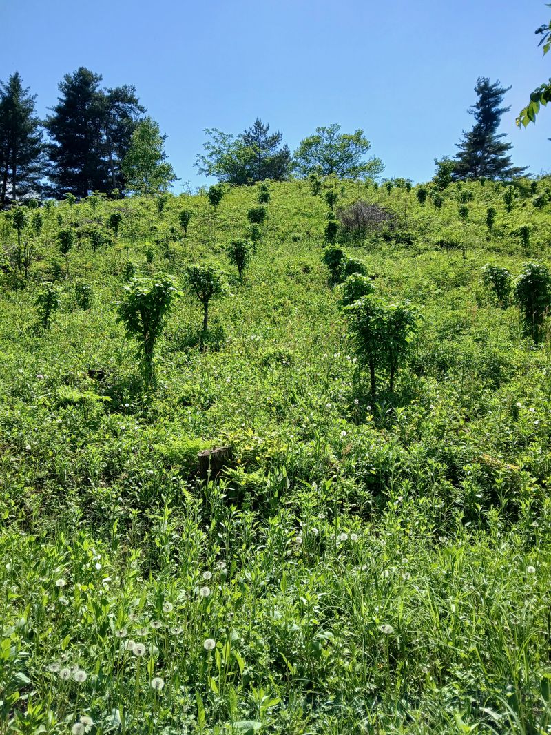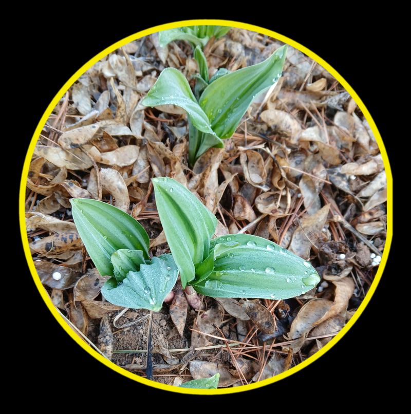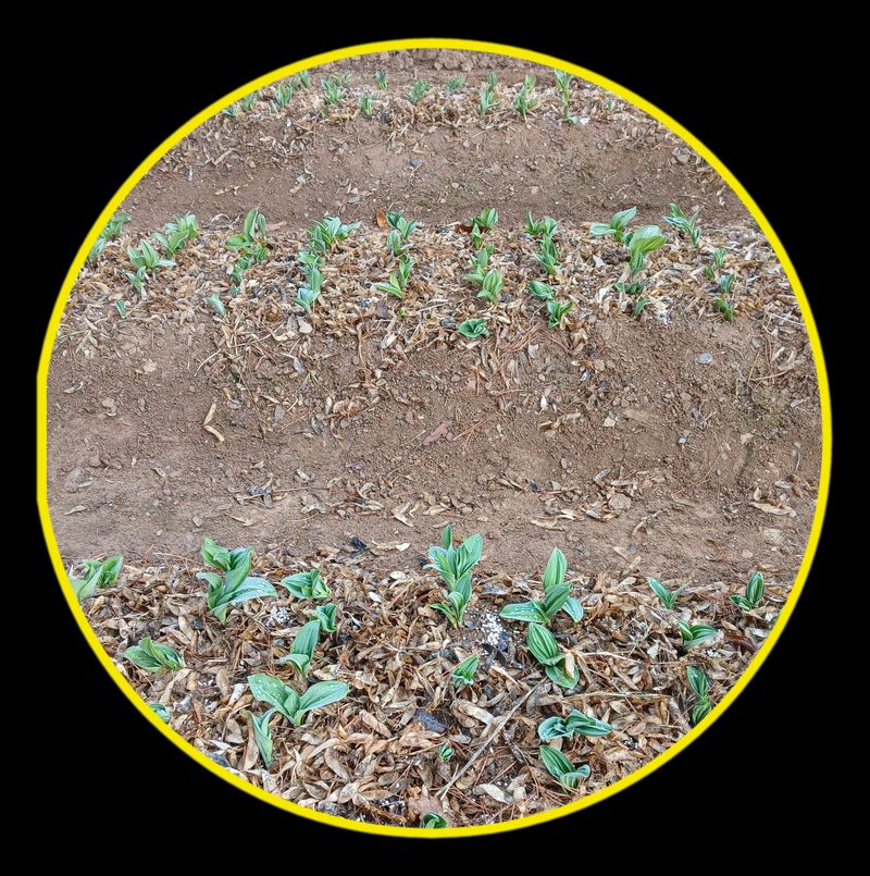 안녕하세요 평창 600고지는 아직 추워서 어제도 얼음이 얼었었습니다 이제 막 고개 내밀어 준 명이나물밭에 비료 주고 흙을 북 주고 풀을 뽑아 주었습니다