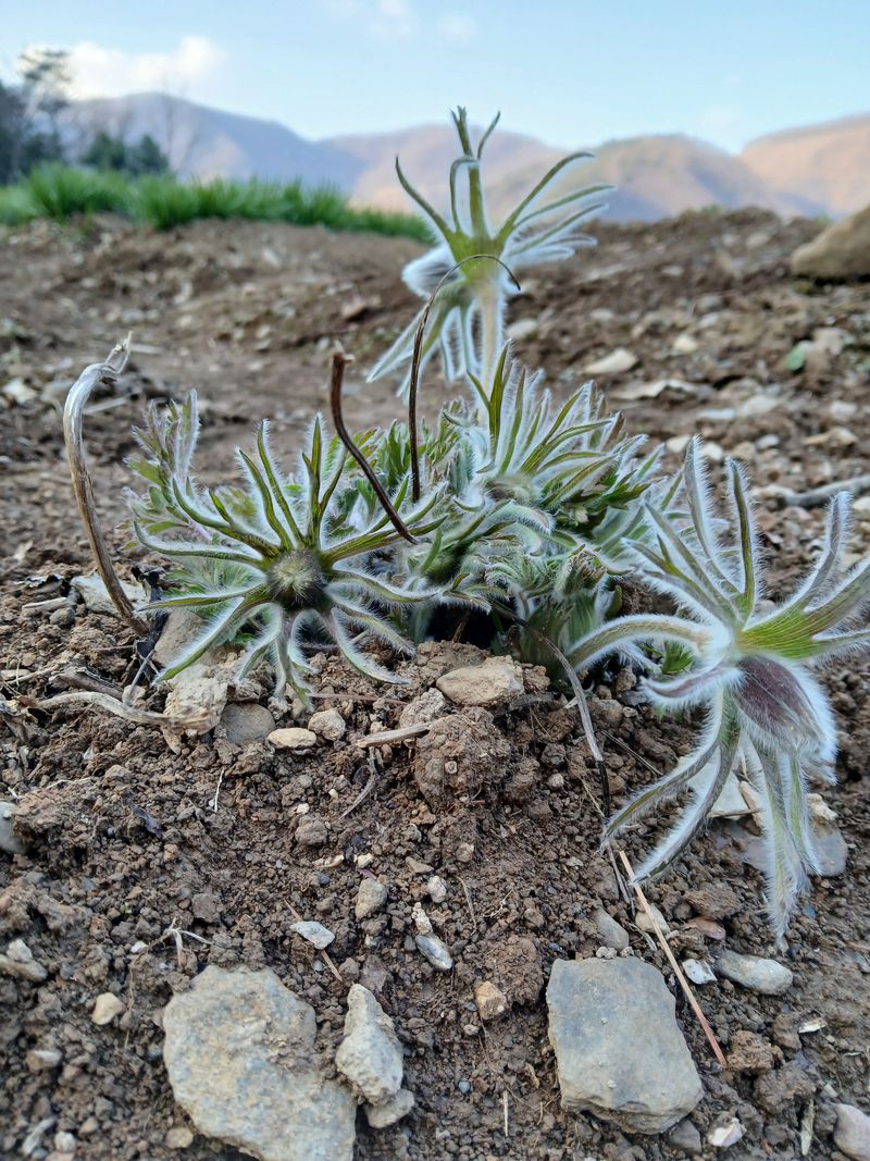 산에서 자라고 있는 장뇌삼과 잔대에 낙엽을 긁어 내 주고 산부추와 일반부추에 잡초제거 및 비료 주기 할미꽃밭의 잡초제거