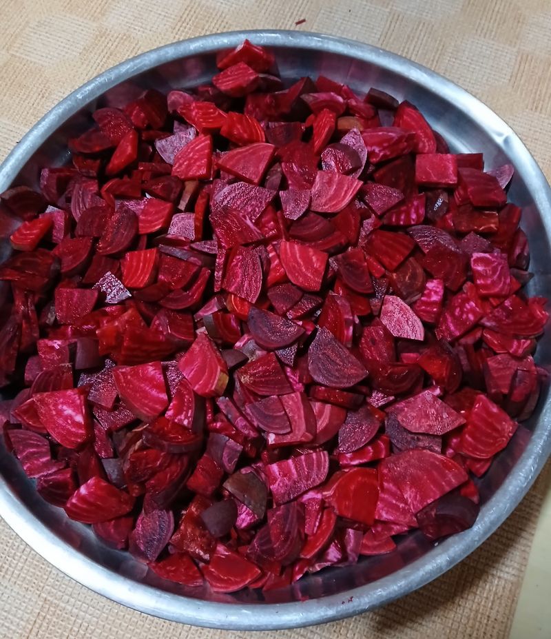 비트를 봄에 씨앗 뿌려 오늘 수확을 하였다 얇게 썰어서 건조기에 넓고 얇게 펼쳐 널어서 건조합니다 건조 시킨 비트는 지퍼백 여러개에 나누에 담아 놓고 일 년 동안 다른 모든 차를 끓여 먹을 때 넣어 사용합니다 그러면 건강에도 좋고 색도 예쁘게 나와 물도 더 먹을수 있게...