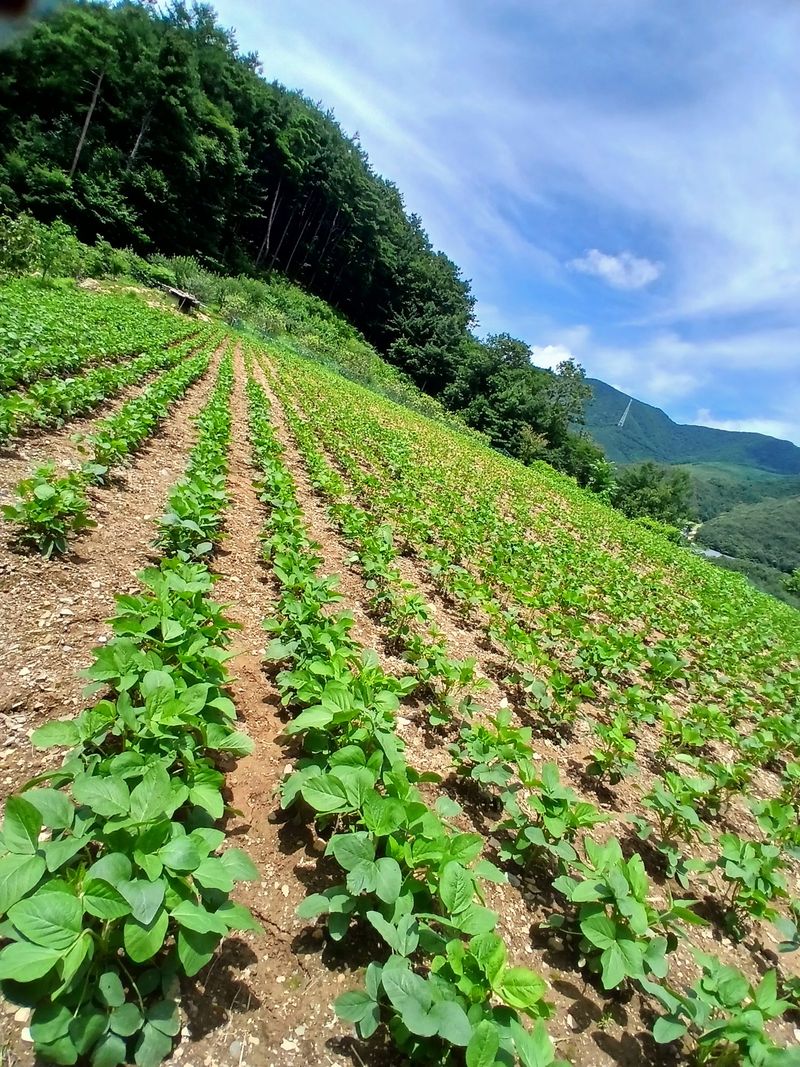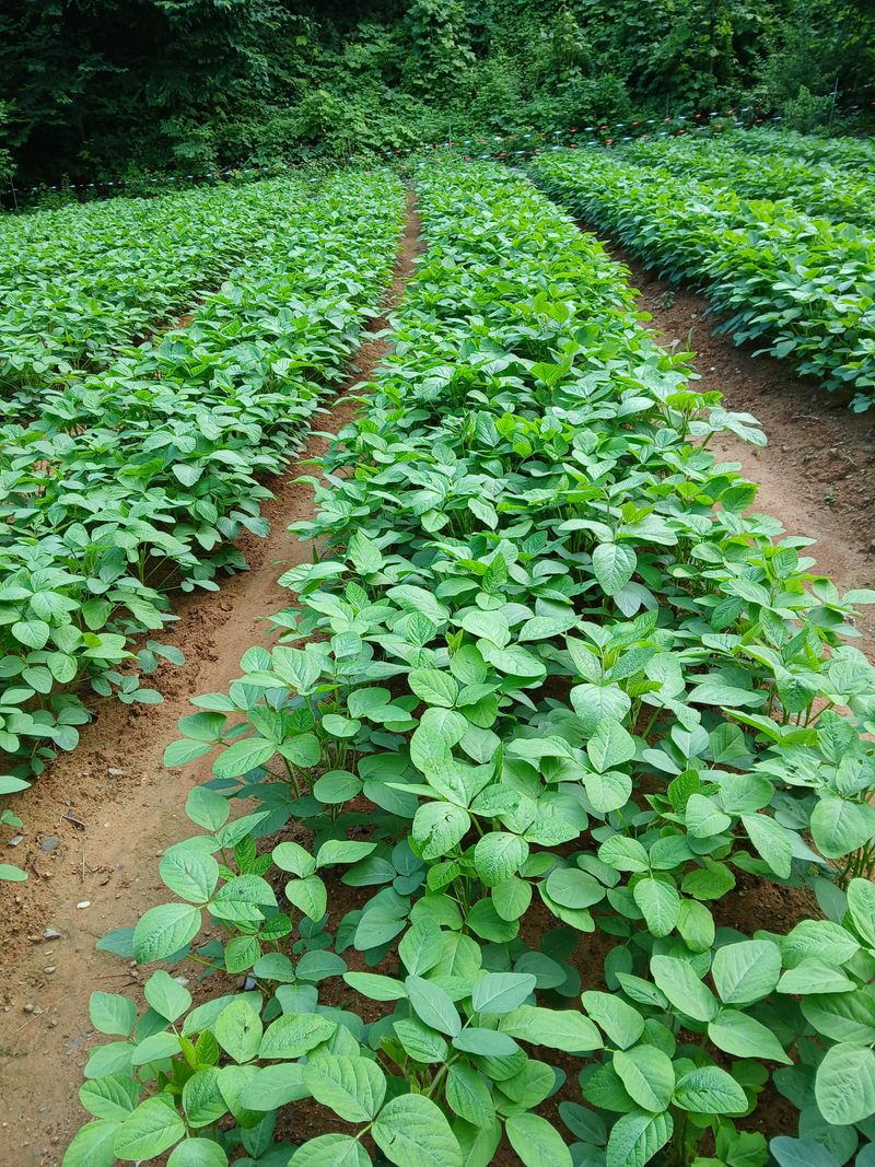 올해는 가뭄이 심해 벌레들이 너무 극성입니다 들깨와 귀족서리태 밭에 2시간30분 동안 약을 쳐 주고 가장자리에 콩이 가지가 찢어지려는 콩나무들을 줄로 따로 묶어 주었다