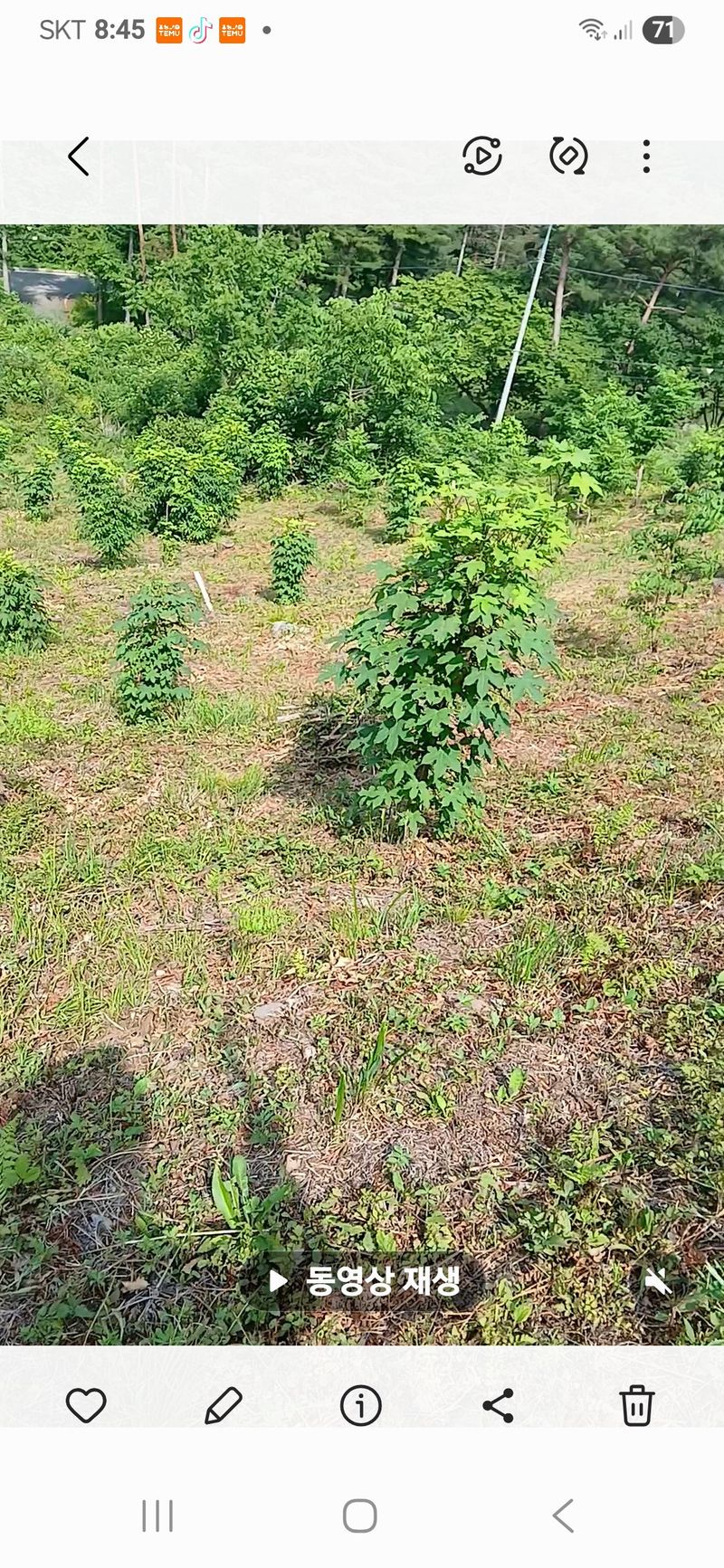 고추나무에 가뭄이 심해 비닐에 구멍뚫어 미생물 흠뻑 줌 귀족서리태에 나방애벌레가 보여 살충제 뿌려줌 파밭에 풀이 올라와 새벽 5시에 일어나 상쾌한 공기 마시며 기분좋게 풀 뽑아줌