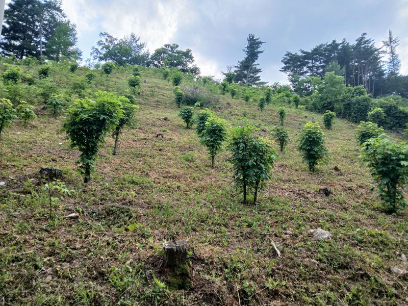 매실나무 밭 가장자리의 칡덩굴 제거하고 반송나무 6그루 전지작업 함
