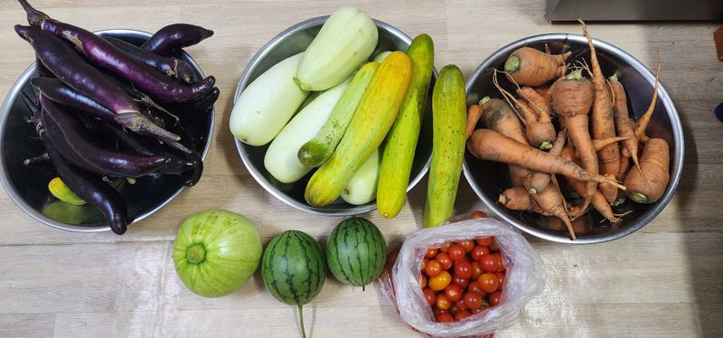 오늘은 그냥 수확만 했다 고추에 노린재가 말썽이긴 했지만 손으로 직접 잡아서 소각했다.고추잎새 뒷면에 노린재 알도 모두 찾아서 발로 밟아버렸다.그래도 그동안 고생해서 돌본 작물들이 탈없이너무 잘 자라 주었으니 감사하다.