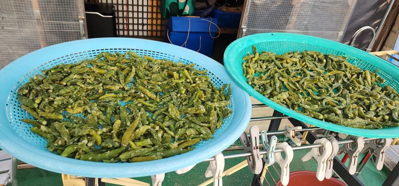 고추농사를 마무리했다 탄저병도 안걸리고 무사히 수확함에 감사했다. 마지막 끝에 달린 덜익은 고추는 찜고추로 말리고 그나마 잘 영근 청고추는 간장에 삭혀 먹으려고 잘 담가서 김치 냉장고에 쟁여뒀다. 올해는 고추 손실도 없이 싹쓸이 해서 뿌듯했다.마지막 밑둥치면서 고추잎도...