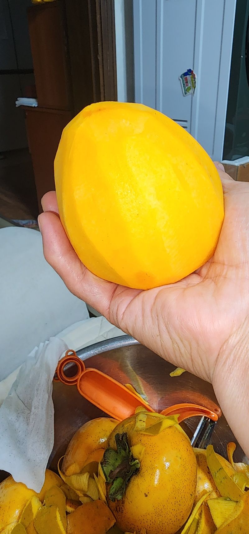우선 노릇노릇한 감을 조금 따와봤다 단감은 정말 맛이 끝내준다 대봉감은 반홍시 하려고 깠다 올해는 감이 진짜 크다. 가지마다 무거워서 가지들이 휘었다. 기쁨행복만땅