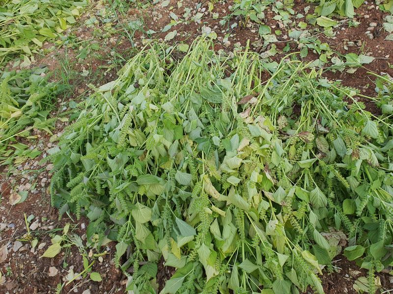 들깨사이 사이에 풀이 많이 자라 뽑아냈음
