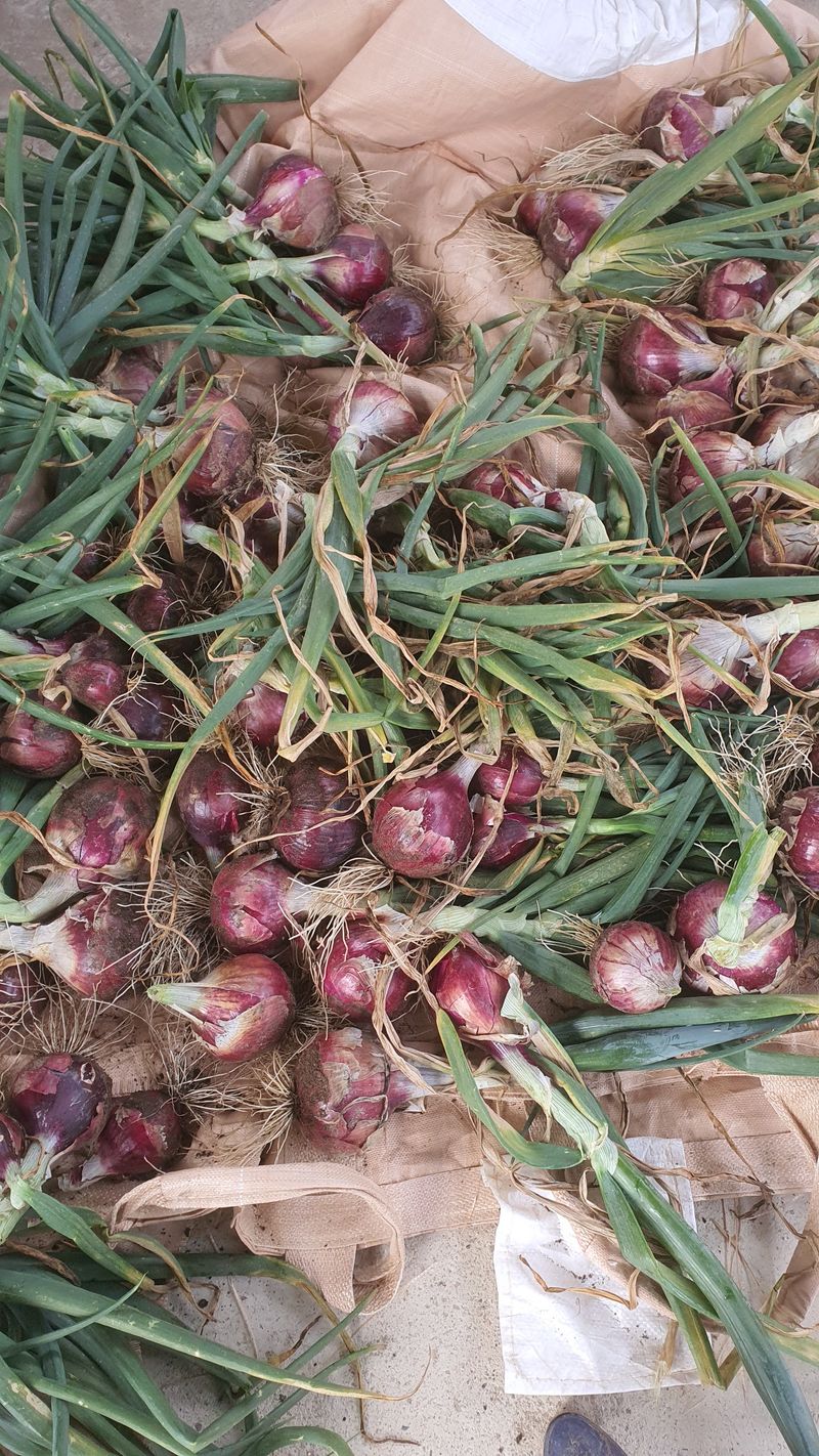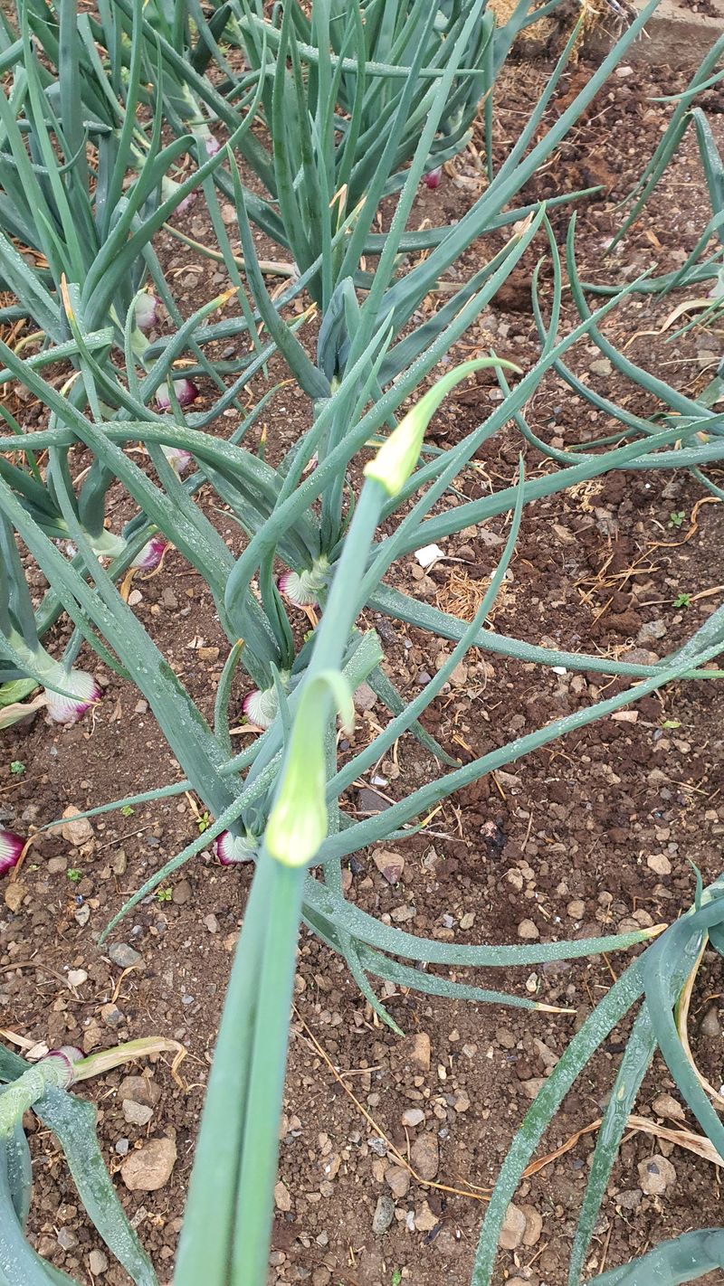양파의 꽃을 따고 마늘쫑 꺽어냄