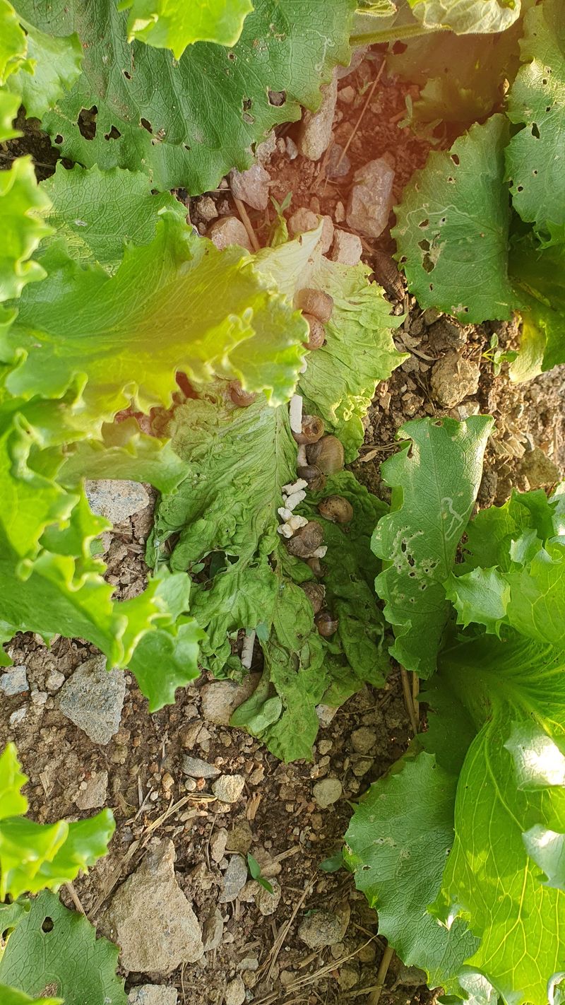 상추사이에 달팽이 유인약을 놓아두었더니 ... 달팽이가 많이 모였다 양파사이에 풀을 뽑음