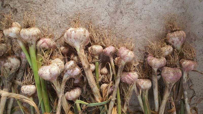 마늘뽑아 말려둠 얼마 안되지만 수확을 함 쪽파도 같이 뽑아 잎 제거하고 널어둠
