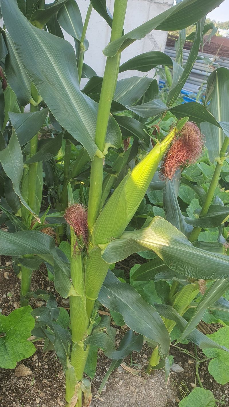 옥수수 수확을 함 얼마 안되지만 옥수수가 실하다 다만 농약을안해서인지 벌레가 많이먹은 것은 버림 껍질을 벗기고 정리해 냉장고에 넣어둠