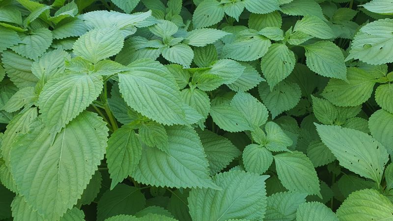 들깨 머리부분이 똑 끊어져있고 말려들어간 것도 있음 잎에구멍이 많이 나서 벌레약을 함