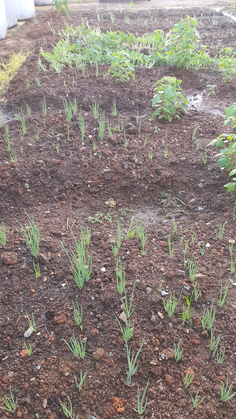 양파모종 사이로 흙붇돋아주고 풀뽑음