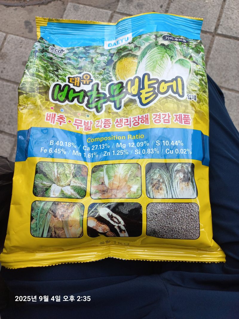 김장배추, 김장무 방제 오복이, 캡마그, 세배로(살충제), 붕산, 요소 전착제 엽면시비