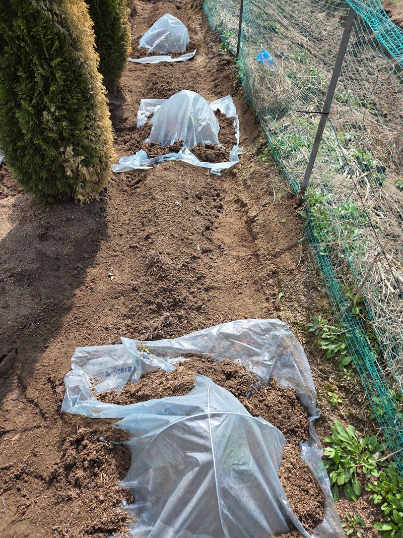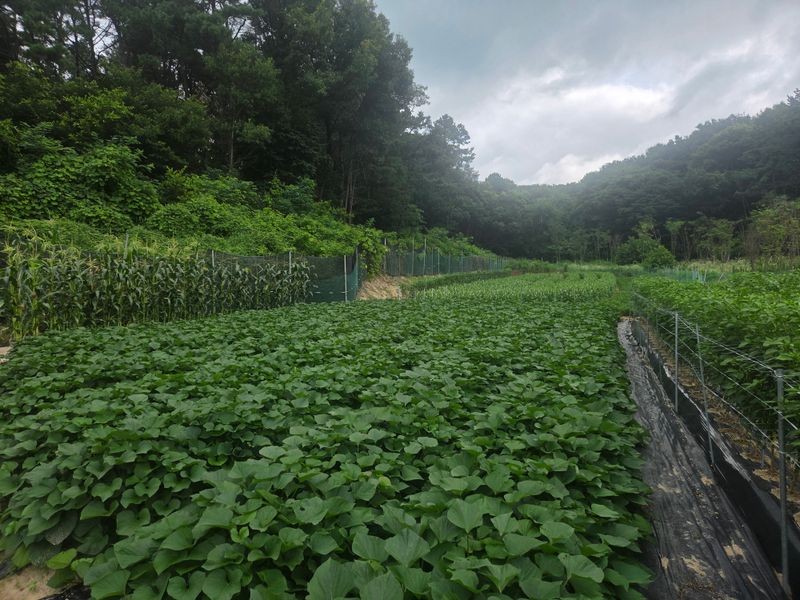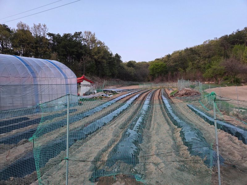 모종호박을 심어주고 비닐 덮인 모습