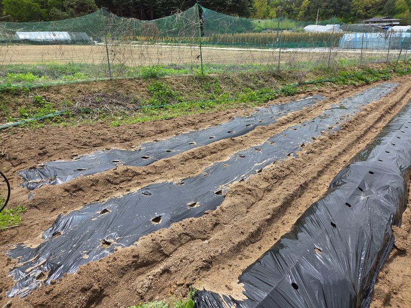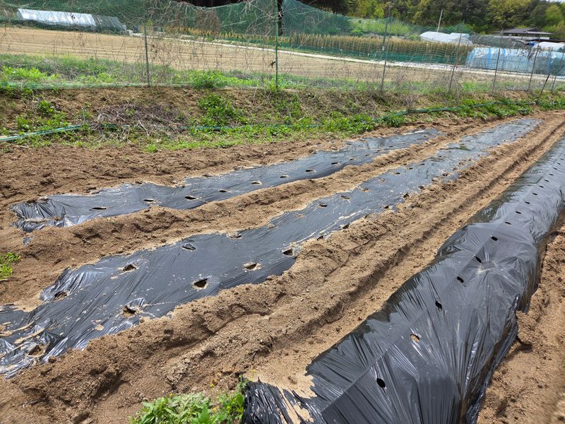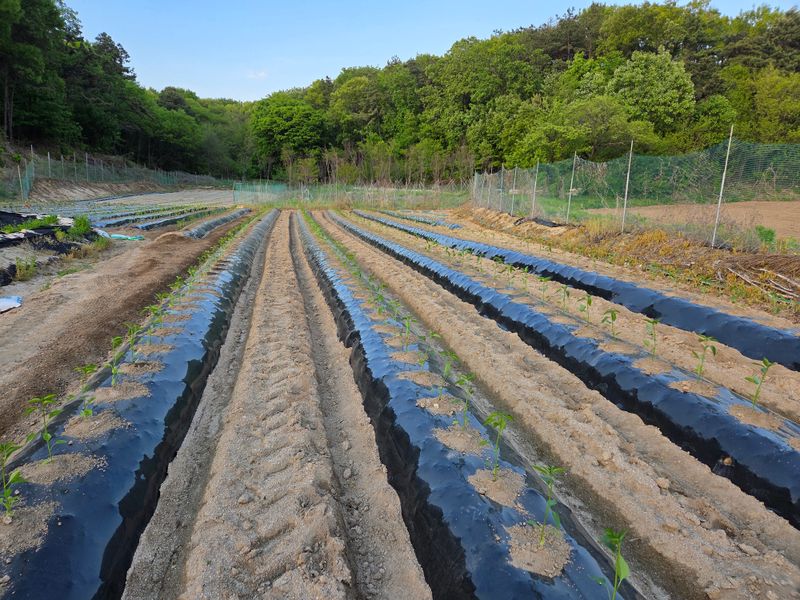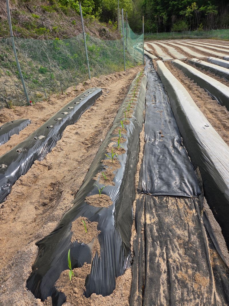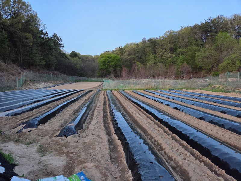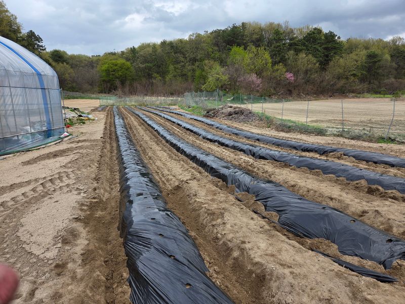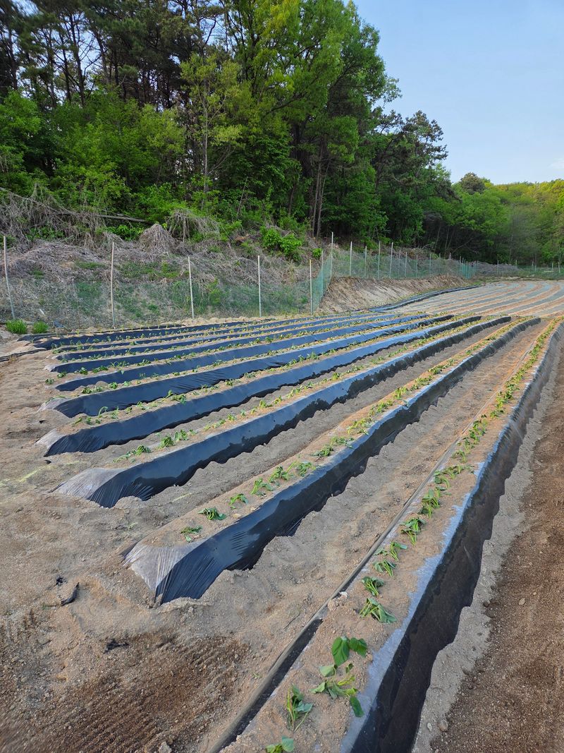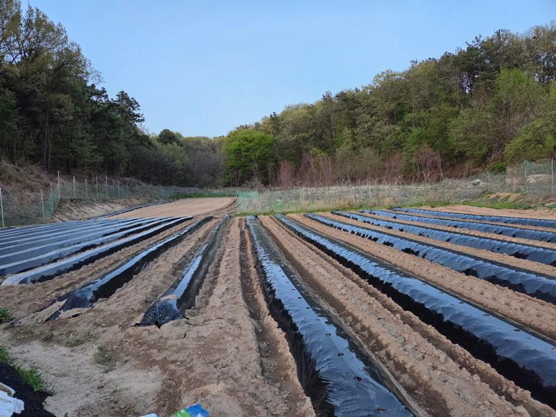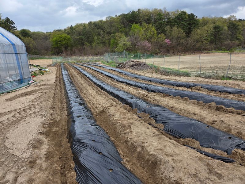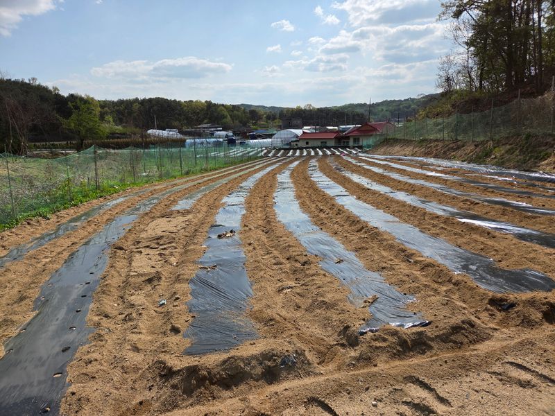 고추밭에 점적호스, 고구마 심을 곳 및 땅콩비닐 멀칭 완료