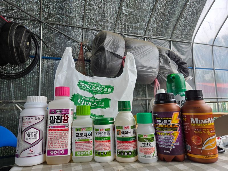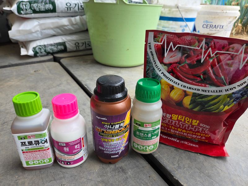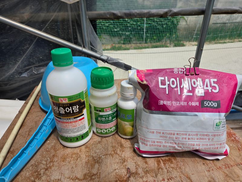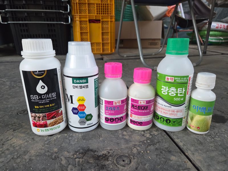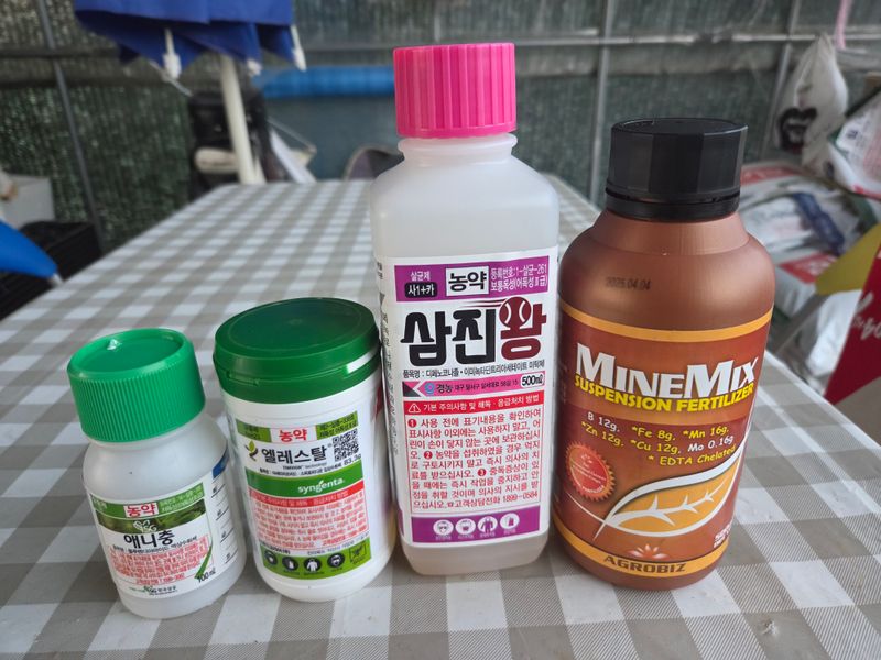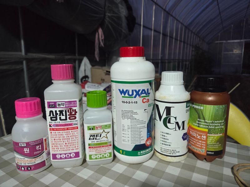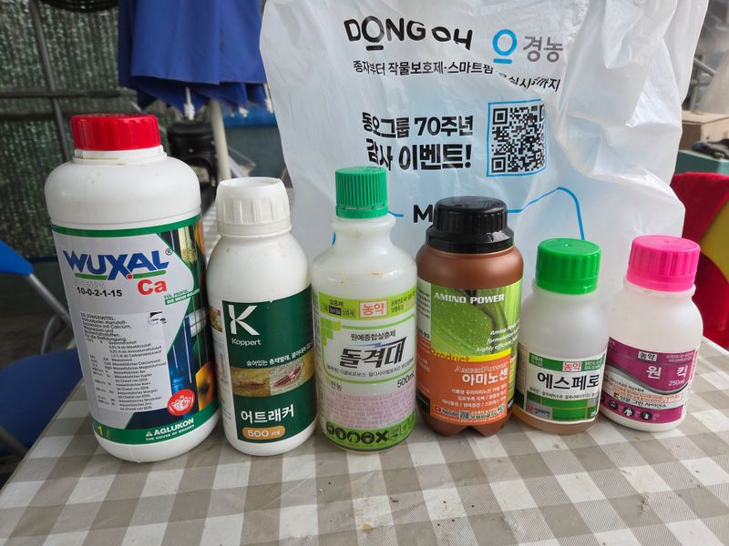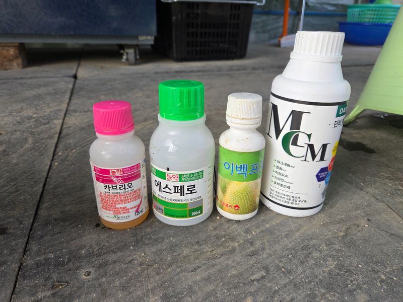 칼슘제 & 어트래커, 돌격대,아미노센, 에스페로, 원킥 혼합 방제 실시. 물주기 3톤 & 아그로솔 1kg 관주