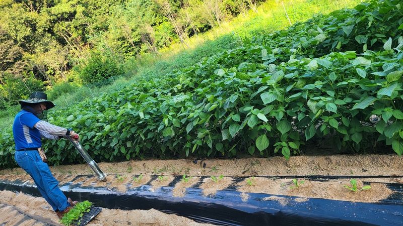 고추밭 및 고구마밭에 비닐멀칭 실시