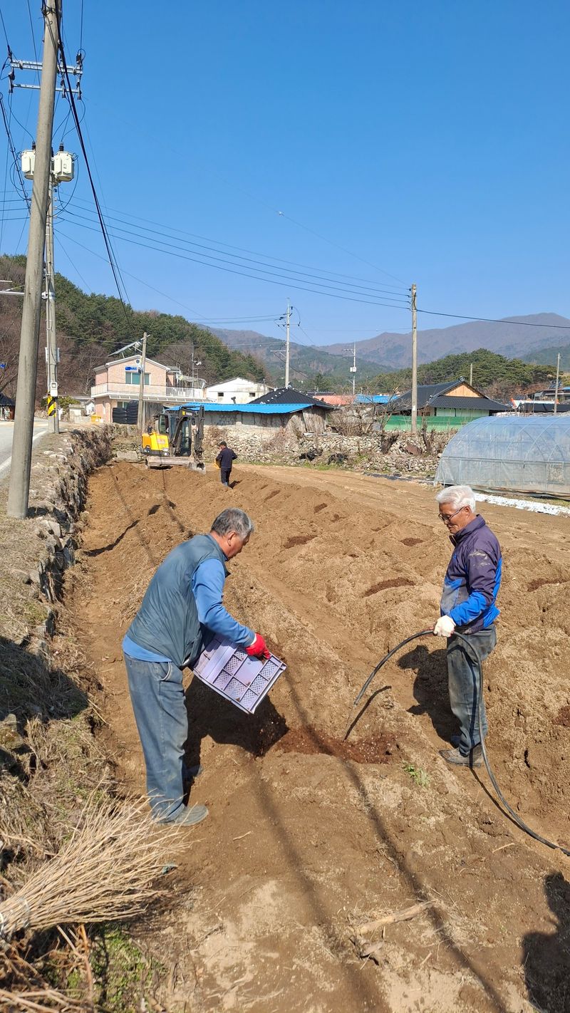 민초피 500주 블루베리 노지120주 내일은 사과대추 300주 묘목 심을 예정 입니다.(쌍지골약초작목반)