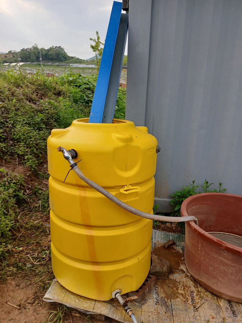 ㅡ사과원등 벌초 ㅡ더덕넝쿨 유도하기 ㅡ400L물통 윗구멍 배수시설 장치