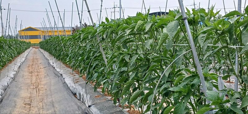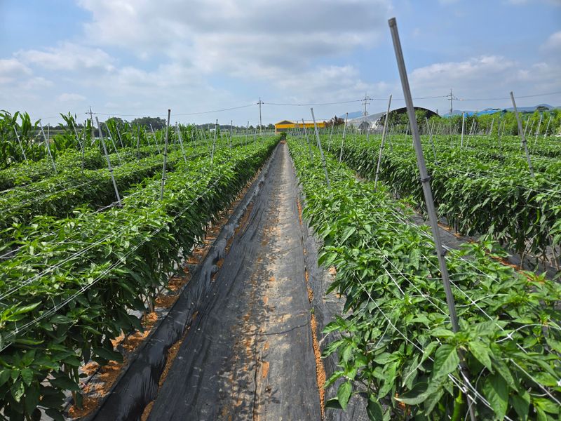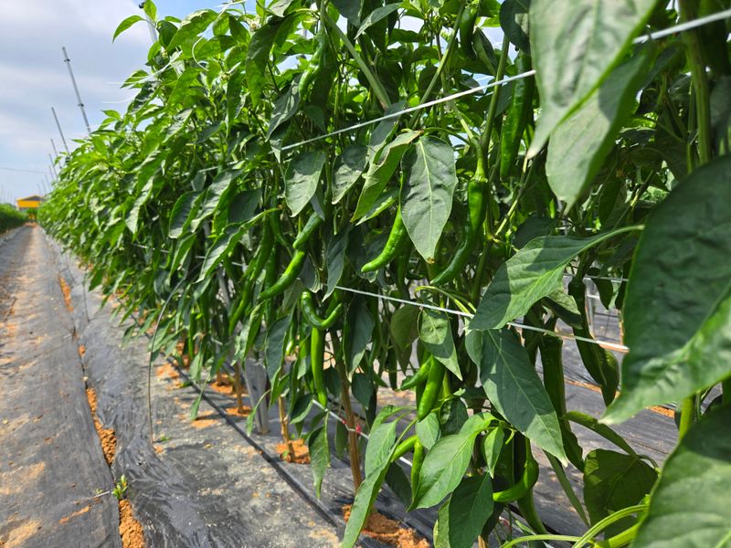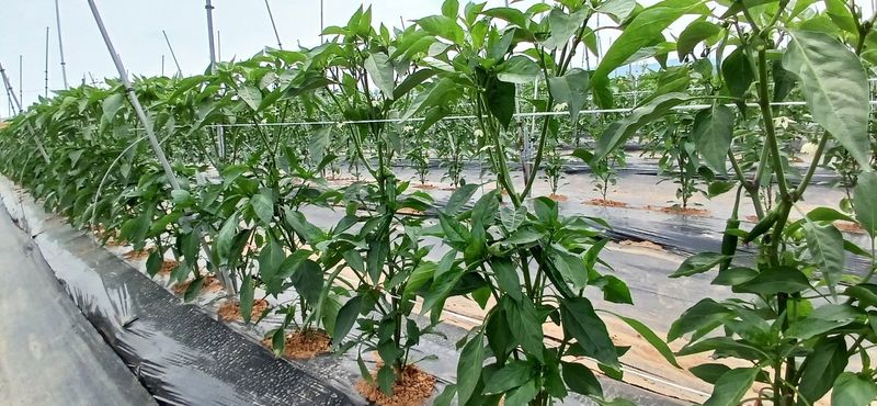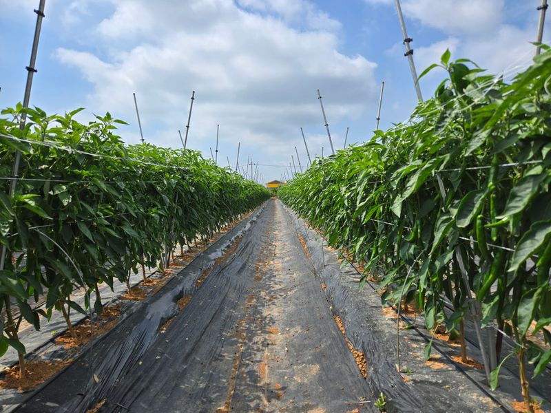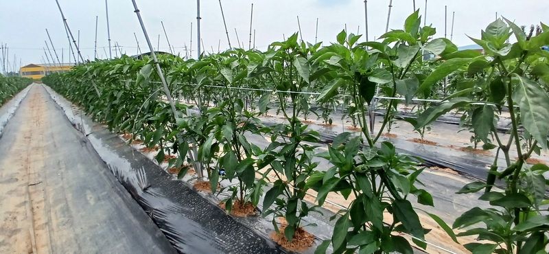고추 품종 순돌이와 대근이. 주간 간격 30cm로 밀식재배 처음 시도 했습니다. 유인과 곁순제거 완료했습니다