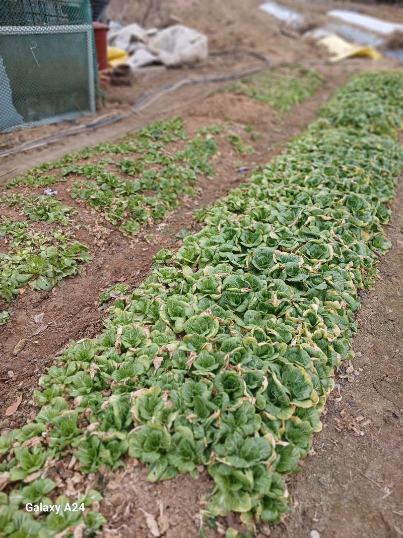 농장에 닭장 있어요 너무추워서 끐는물로 닭장 물 얼어붙은 물녹여 주었습니다 그리고 봄동 조금수확해서 나물반찬. ㅡㅡ