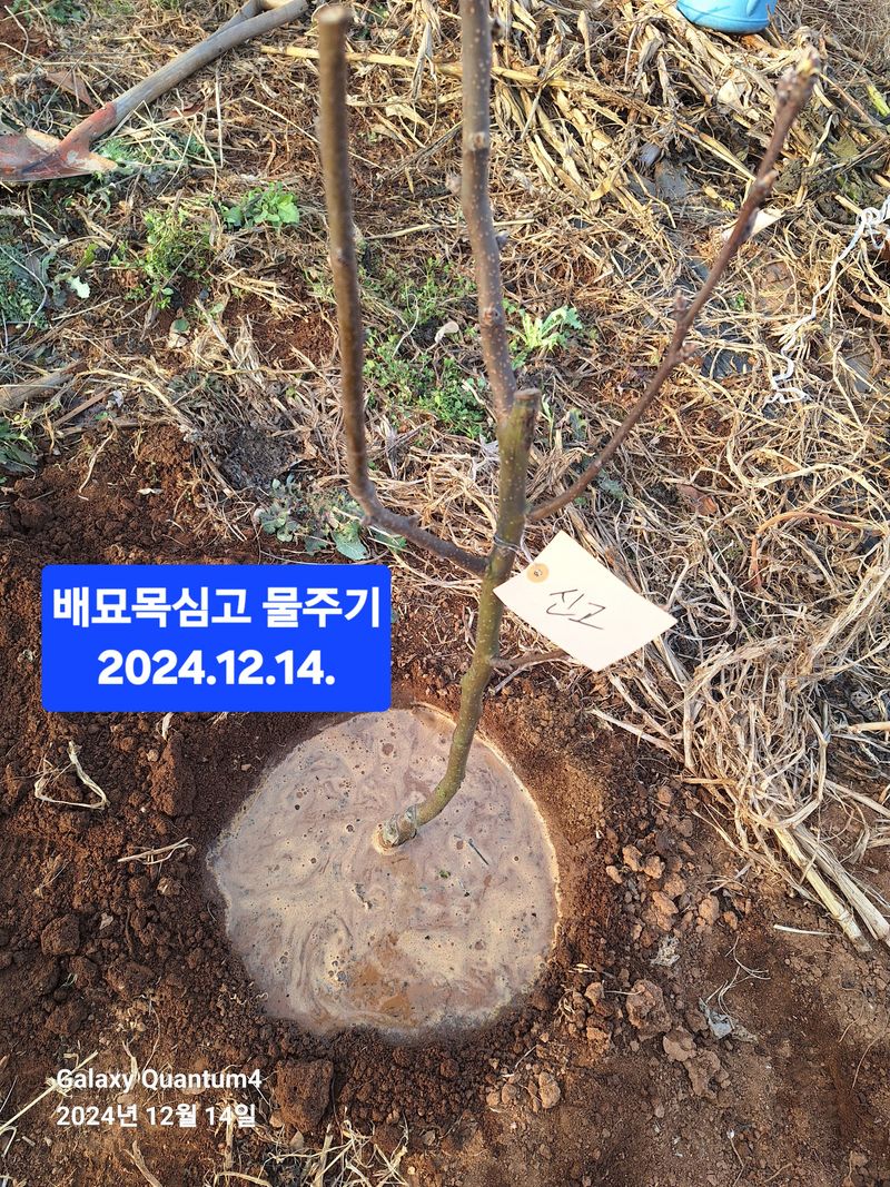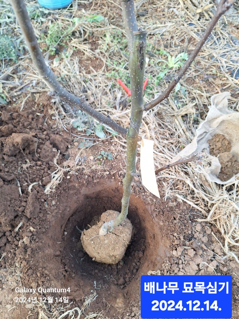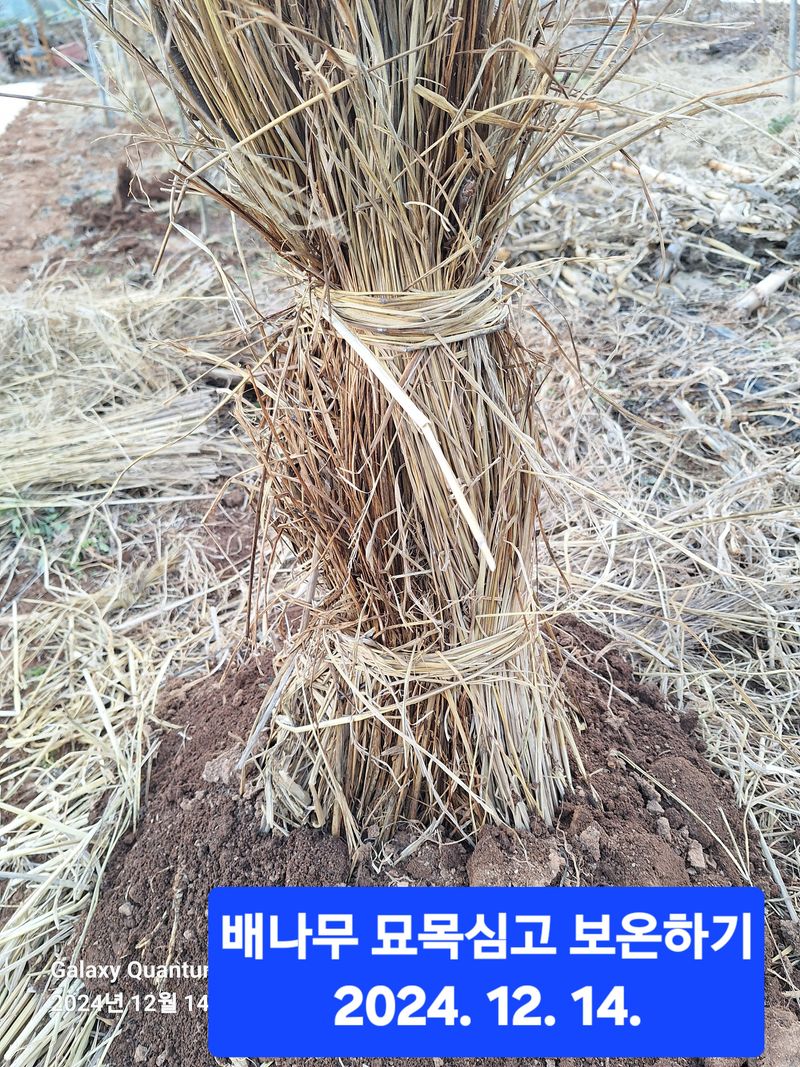 배나무 묘목 3년생 2주를 옥천 일심묘목농원에서 구입하여 물을 충분히 주고 심었다. 그리고 볏짚으로 보온해 주었다.